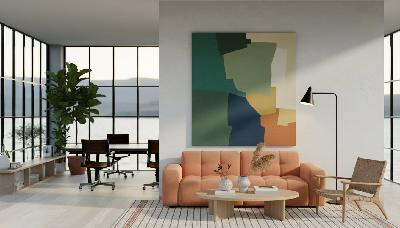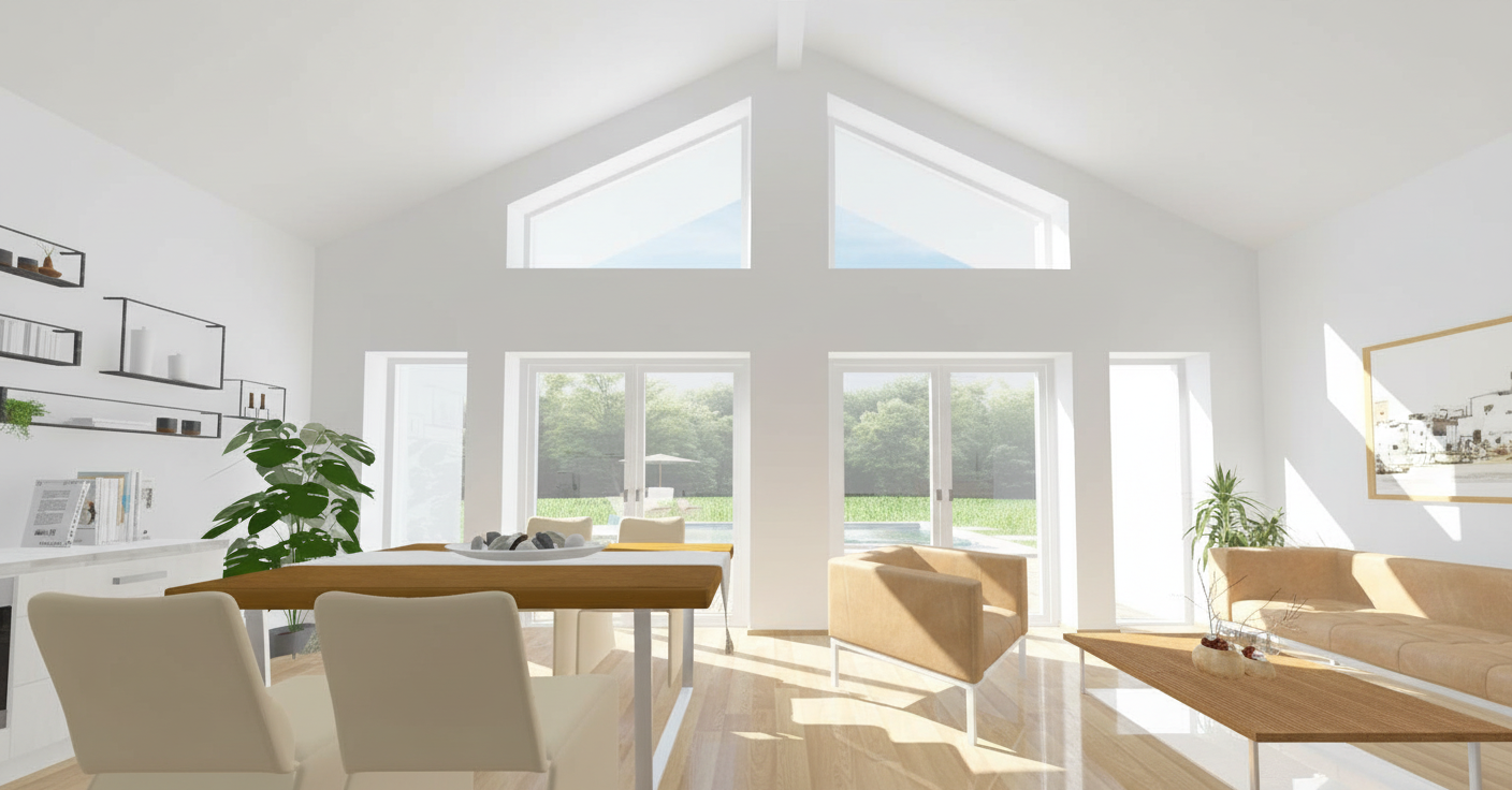 erstelle eine realistische innenansicht mit viel hellem tageslicht im raum