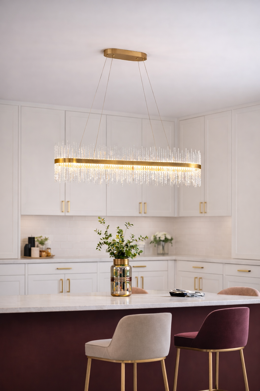 render this drawing please to have two matching counter stools make the a little more stylish add a little interior styling to the counter with a tray and some flowers and a candle keep everything else the same make the image crisp and sharp