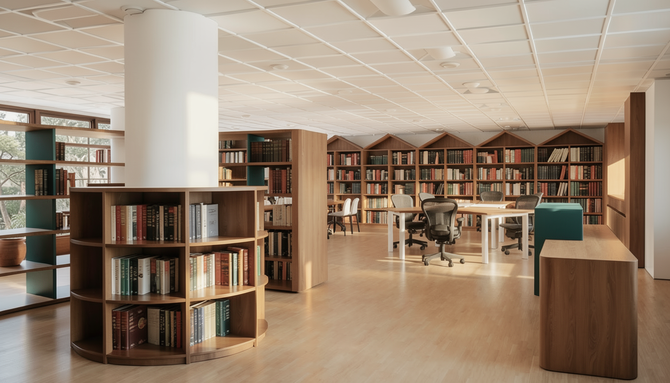 realistic chinese oriental library keeping the white grid ceiling all the shelving include books for library
