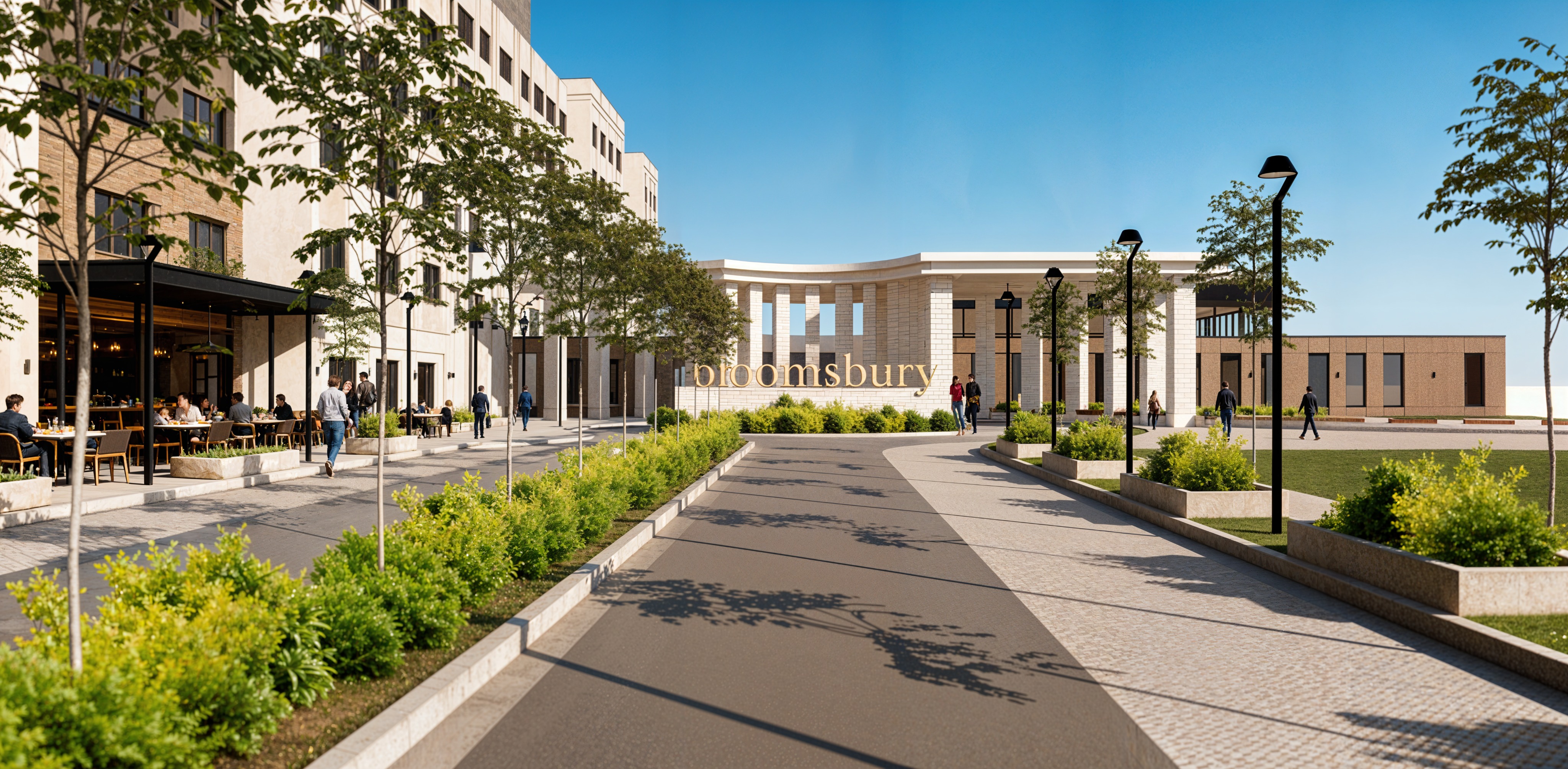 make into night scene add uplighting to columns and buildings inviting resort entrance