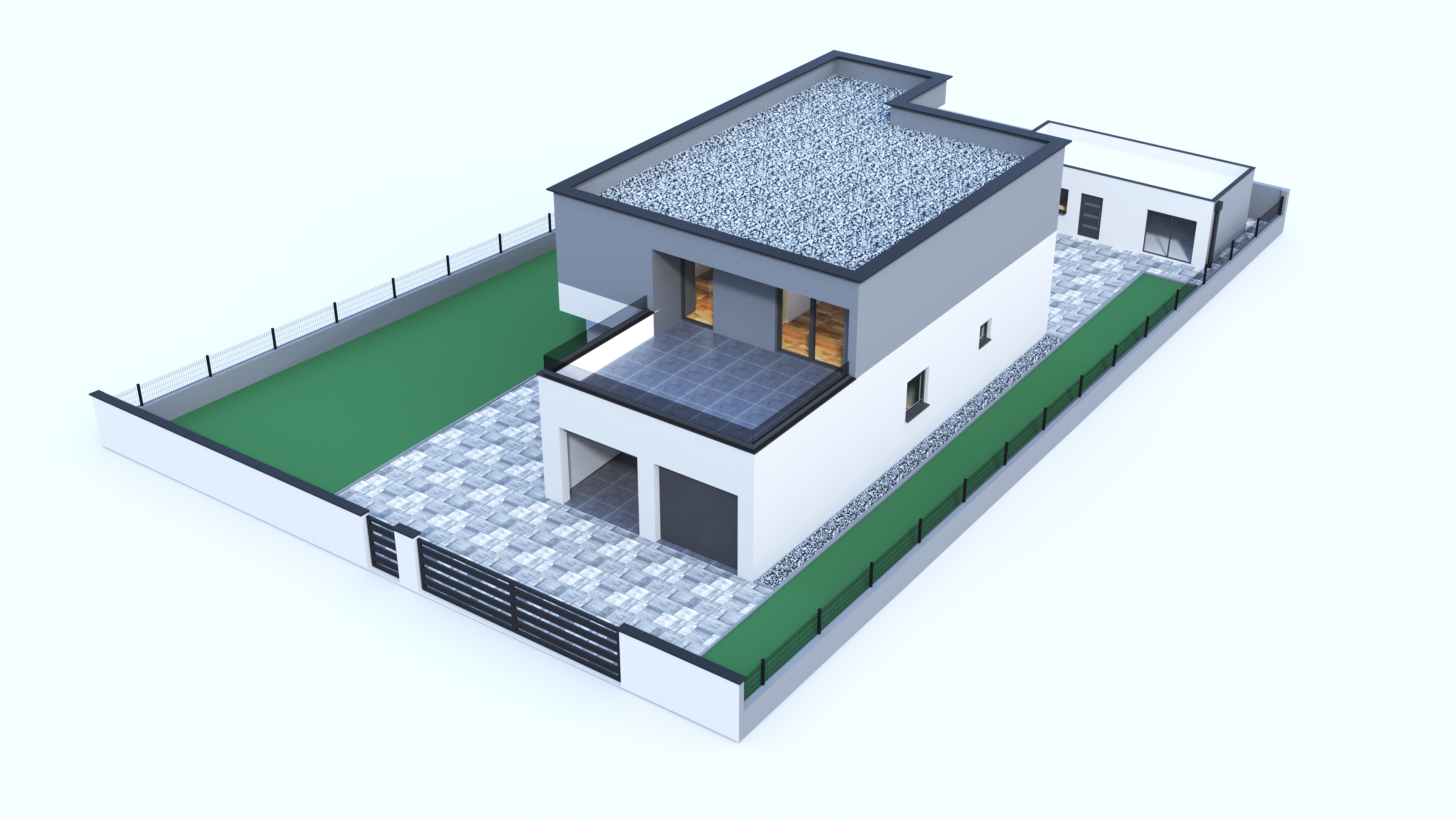 modern house with side building where there is green color there are grass and vegetation