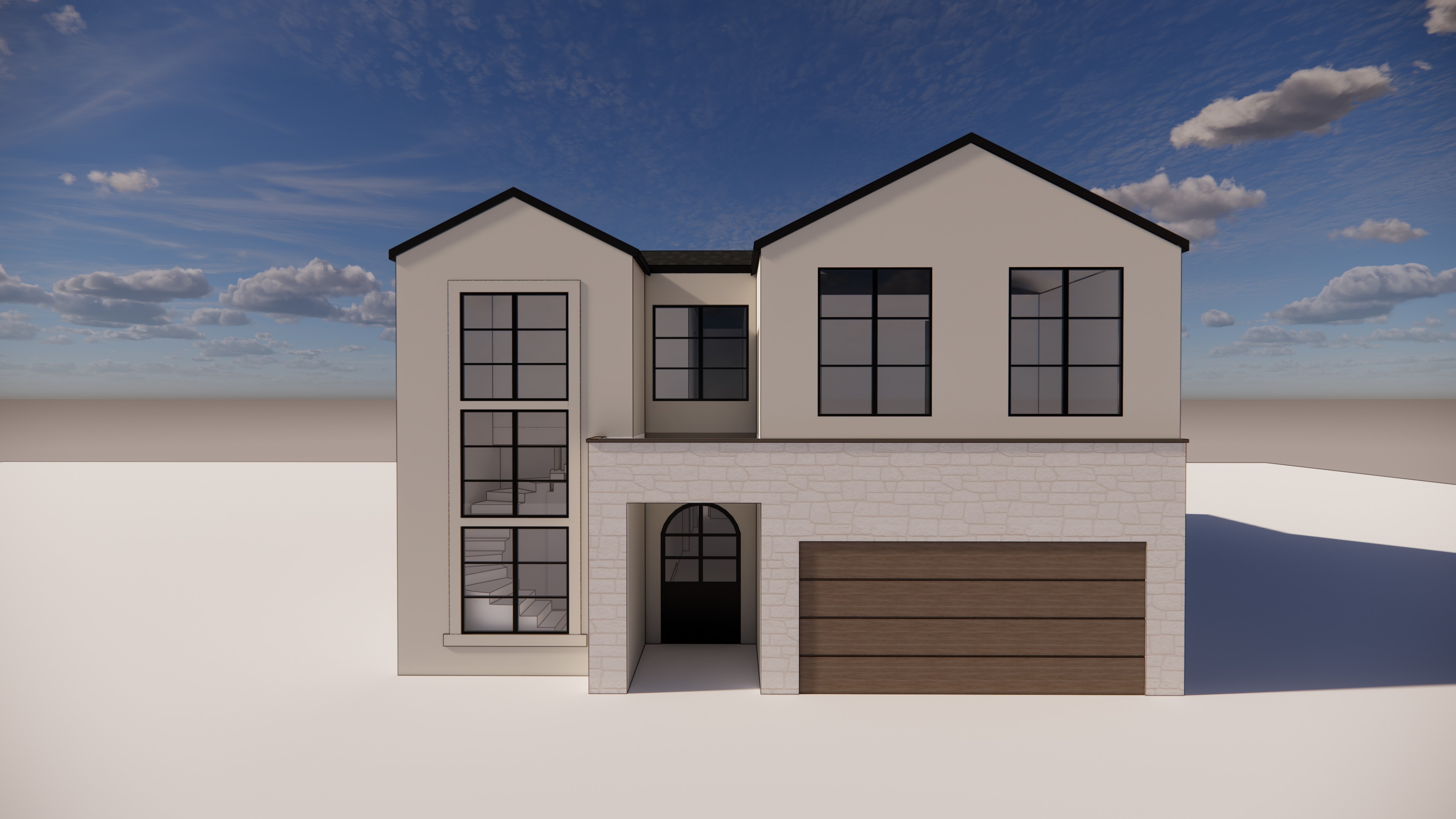 needs this to look like a modern transitional house add minimal landscaping but make it look elegant like suculents