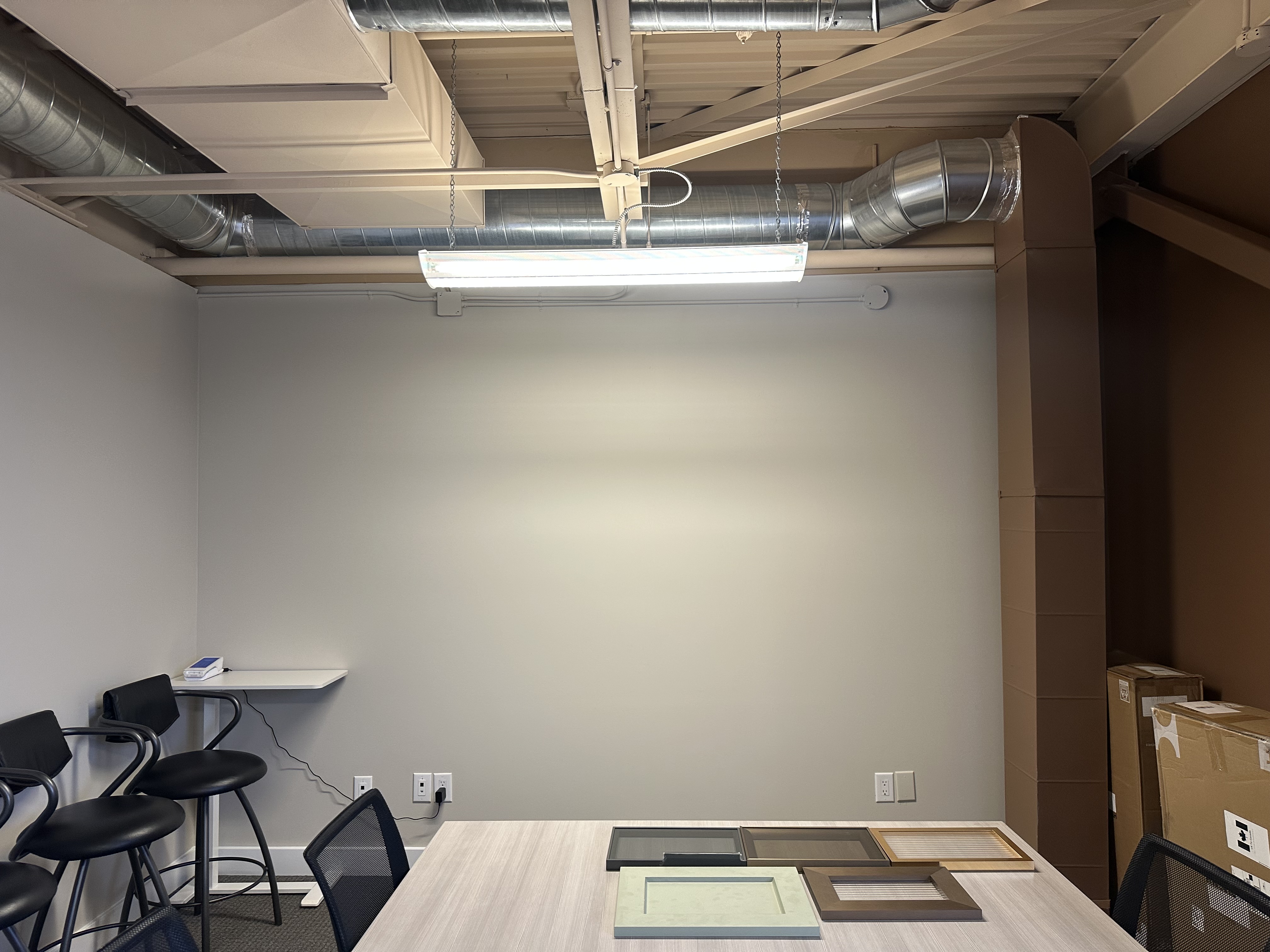 remove the bar stools on the left side render this wall to have shelving like the reference images it hould be a light wood finish