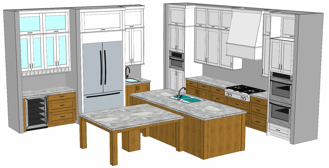 do not change the cabinets in any way preserve the exact cabinet colors materials finishes dimensions door and drawer styles hardware spacing alignment and all geometry exactly as shown do not alter the countertop shape backsplash appliances flooring lighting fixtures or wall structure only remove the construction materials clutter and mess from the scene clean the room and make it look finished and staged add a few simple tasteful home accessories appropriate for the style of the space but do not add or remove any furniture windows or architectural elements maintain the original lighting direction and realism enhance clarity and polish the photo while keeping the cabinetry and room design completely unchanged do not alter the lighting to keep the cabinet colors as they are in the image keep the white background just make it look realistic