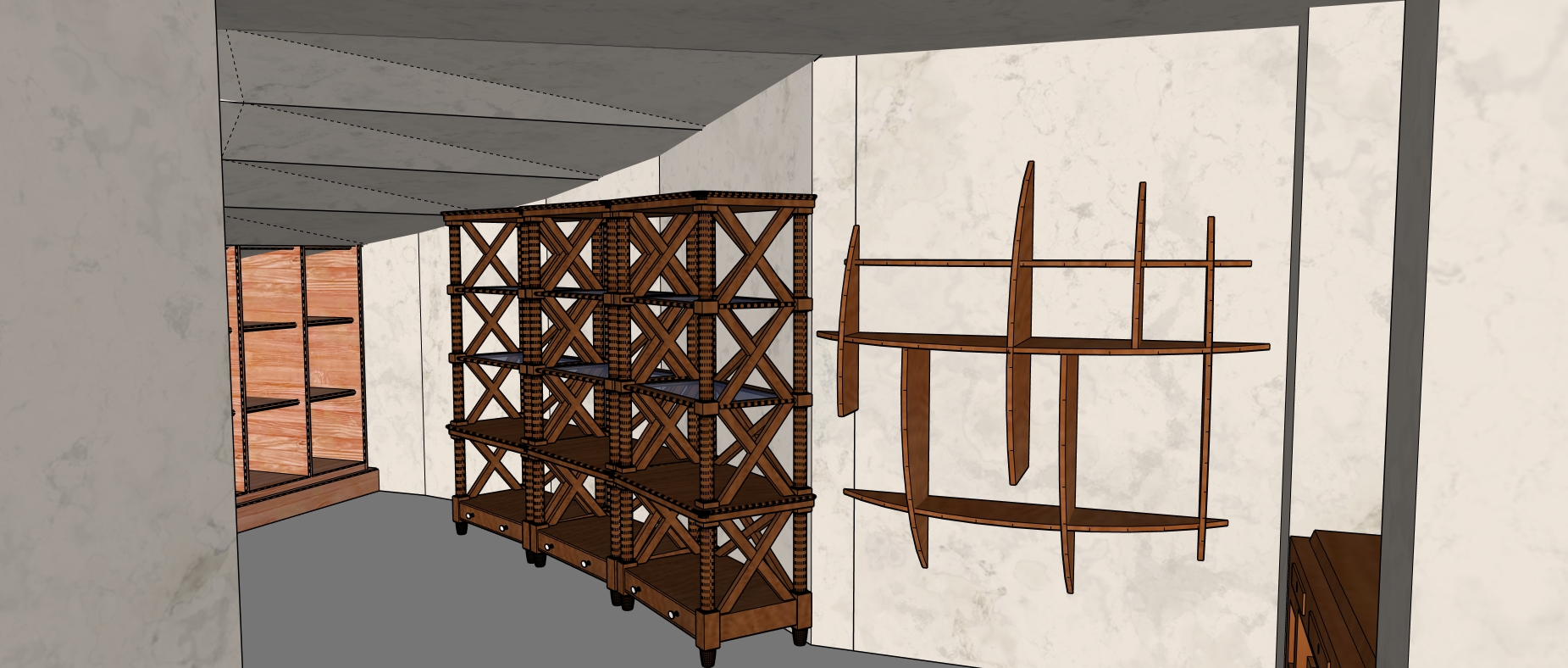 small room with wine on shelves