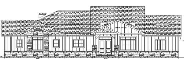 keep roof lines and windows door with glass and side lites no stone on lower portion front entry gable with all stone warm white board and batten siding brownish gray roof