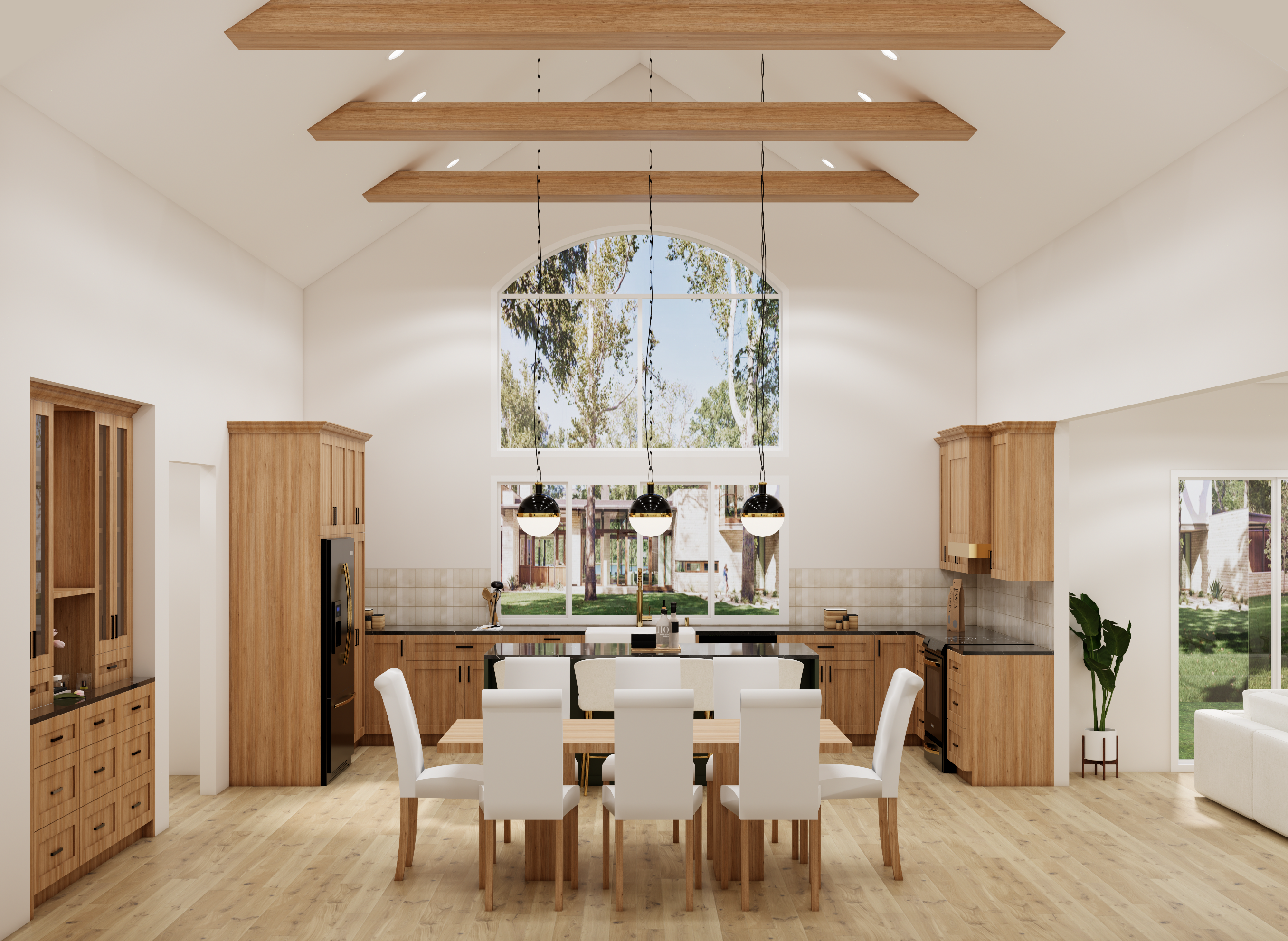 can you make the back wall with the big window have lime wash texture paint long pendant lighting on each side of the window