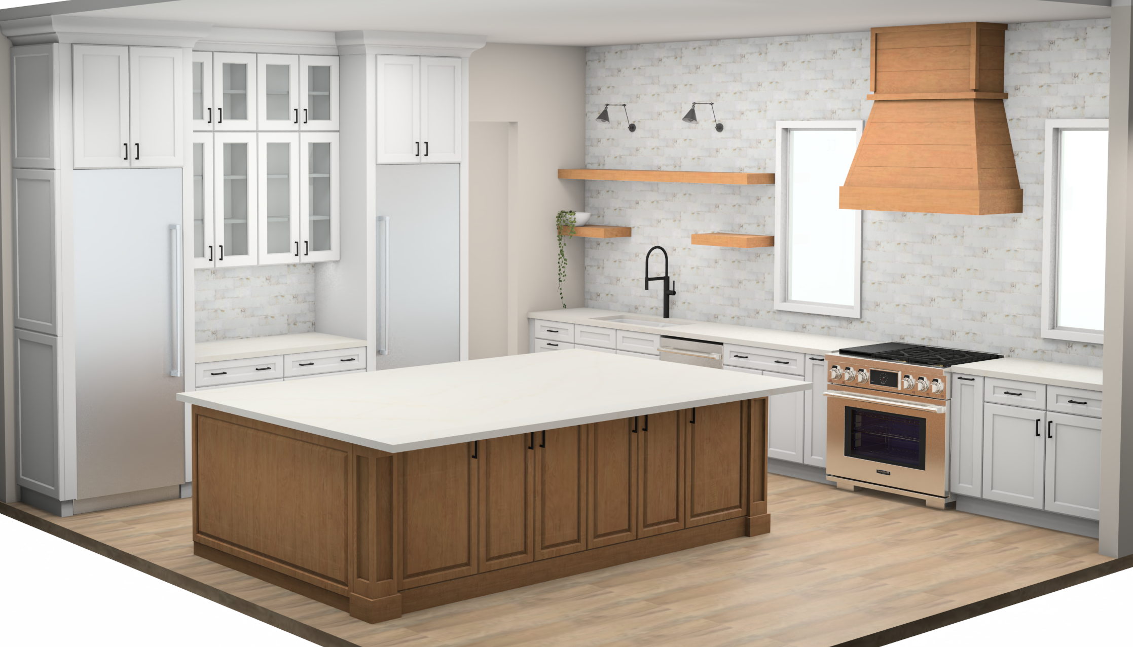 create a hdri photo realistic rendering do not change any image details do not move or modify features keep the colors the same make the rendering photo realistic with 4k resolution add natural sunlight facing cabinetry