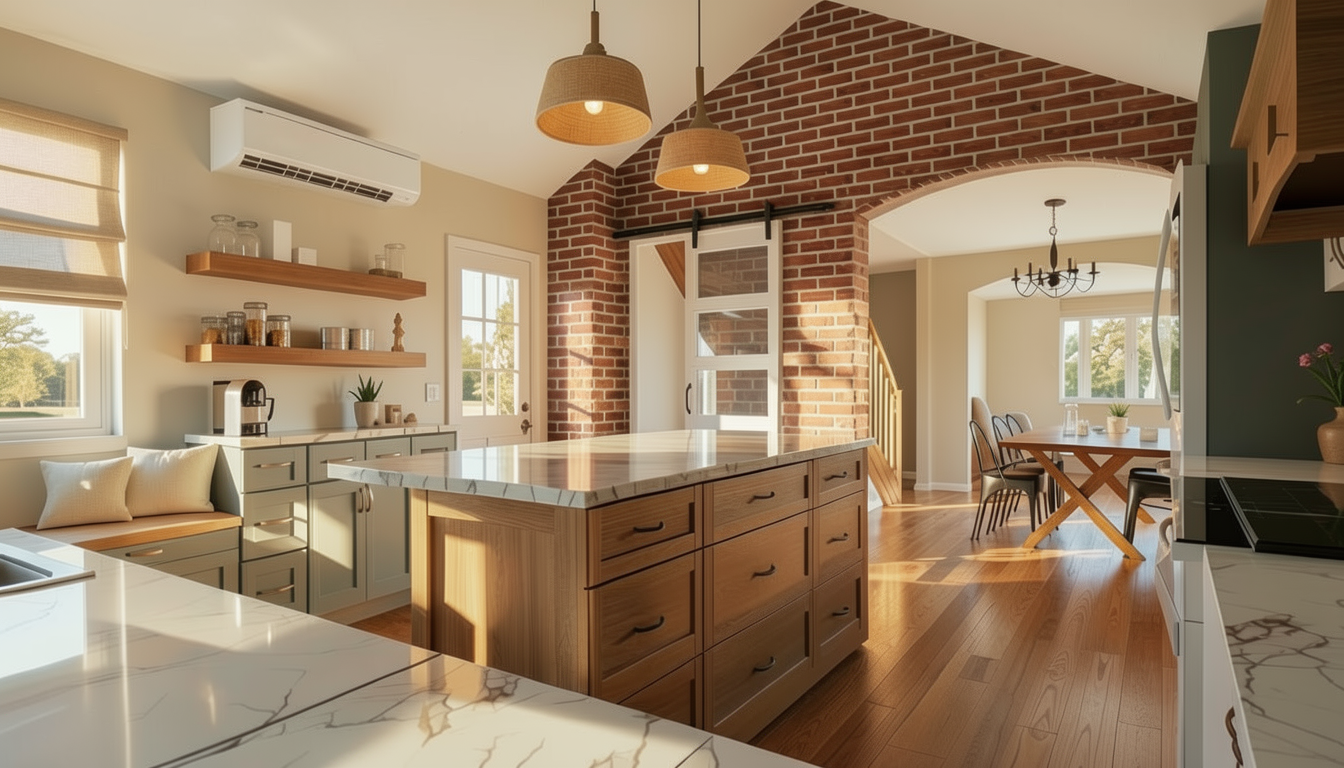 keep the exact layout materials and colors unchanged replace the vanity lights with a fixture that is a mix of traditional and modern