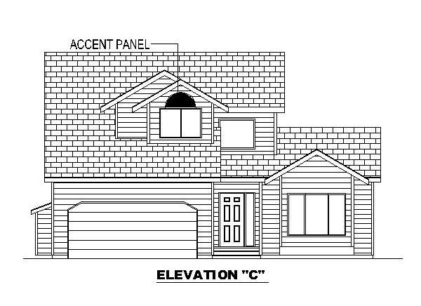 watercolor render of modern home painted grey with cedar accents and a yellow door include trees and an alaska like environment in the background simple driveway and walkways in front of the home