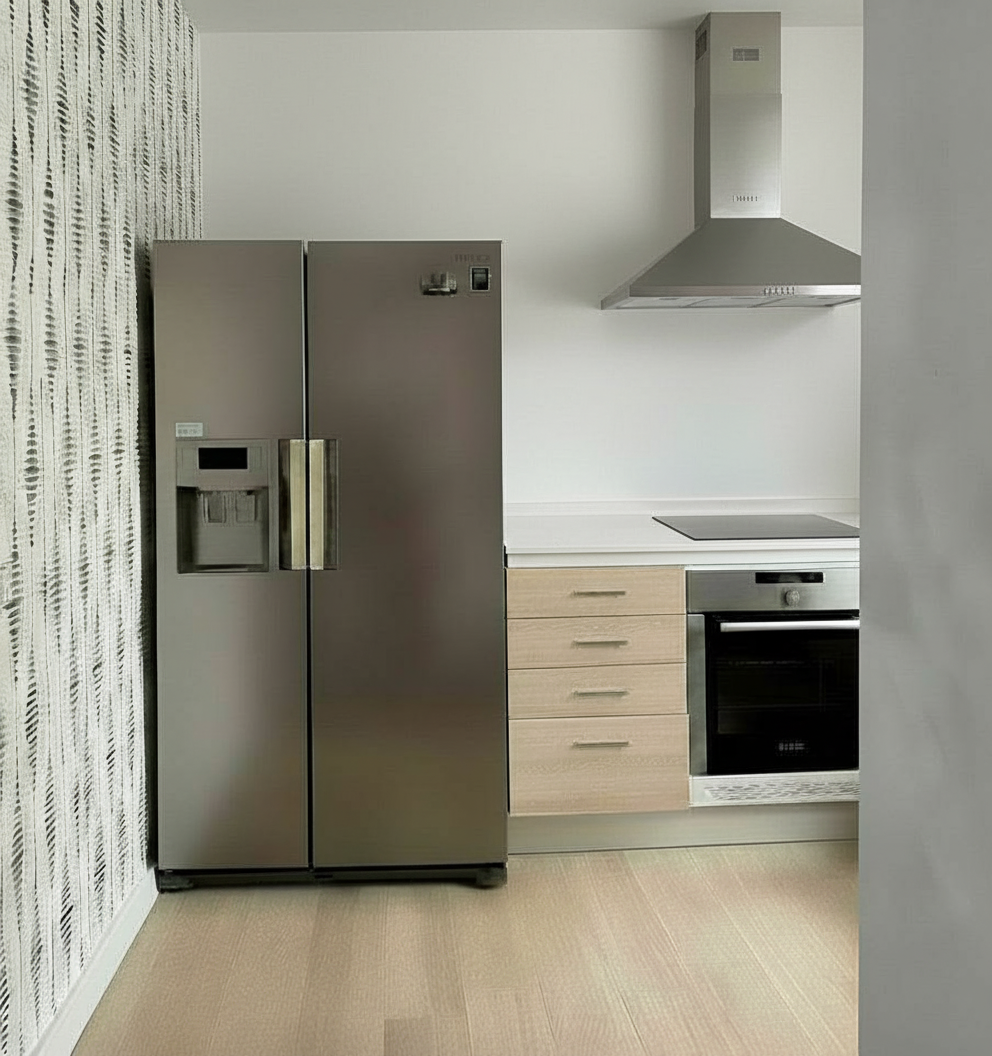 sustituye el papel pintado tipo ikat de la pared de la derecha por el papel vin lico de la imagen de referencia
