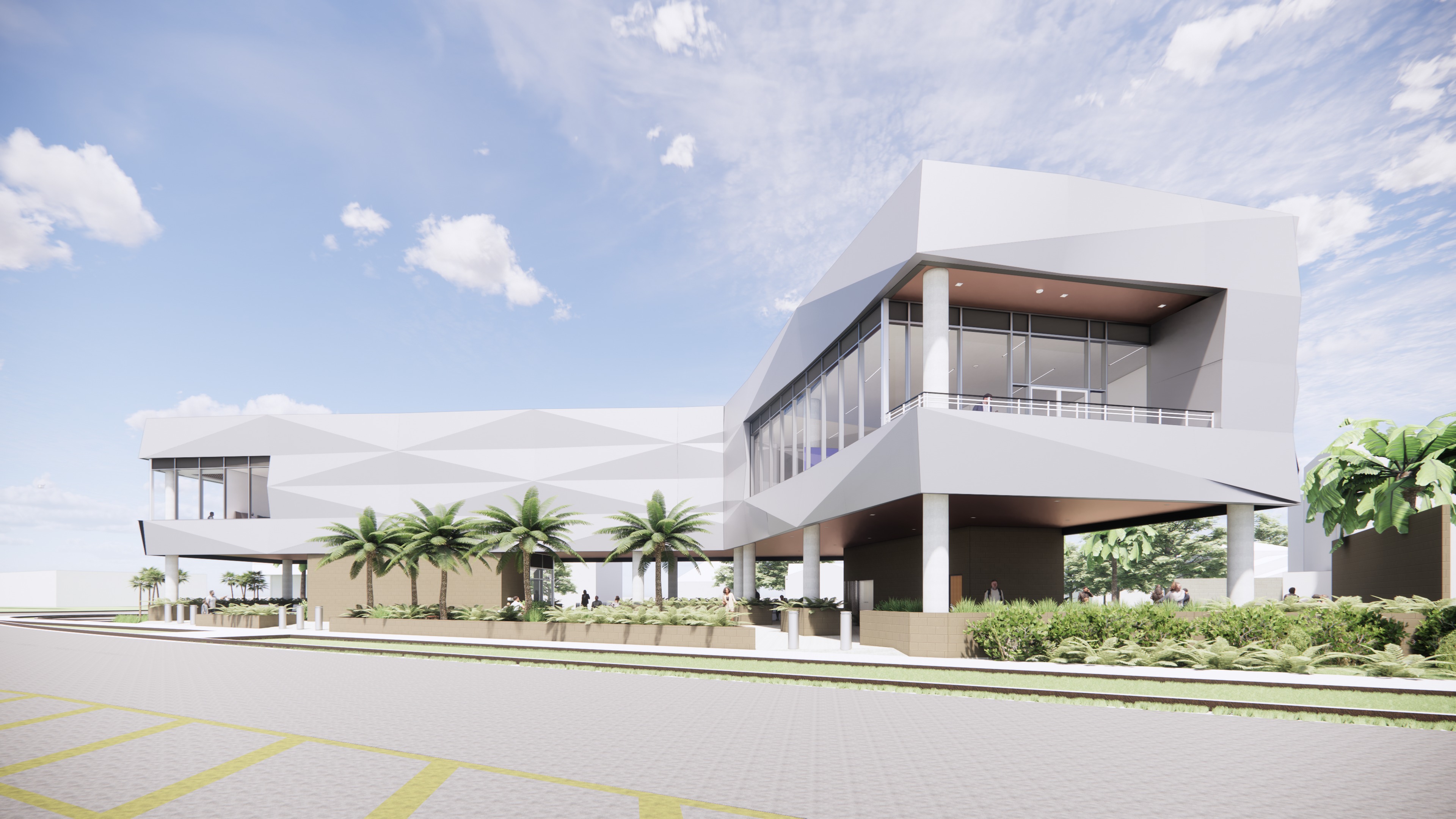 florida sunset in the background keep foreground side models slight glossiness to the facade