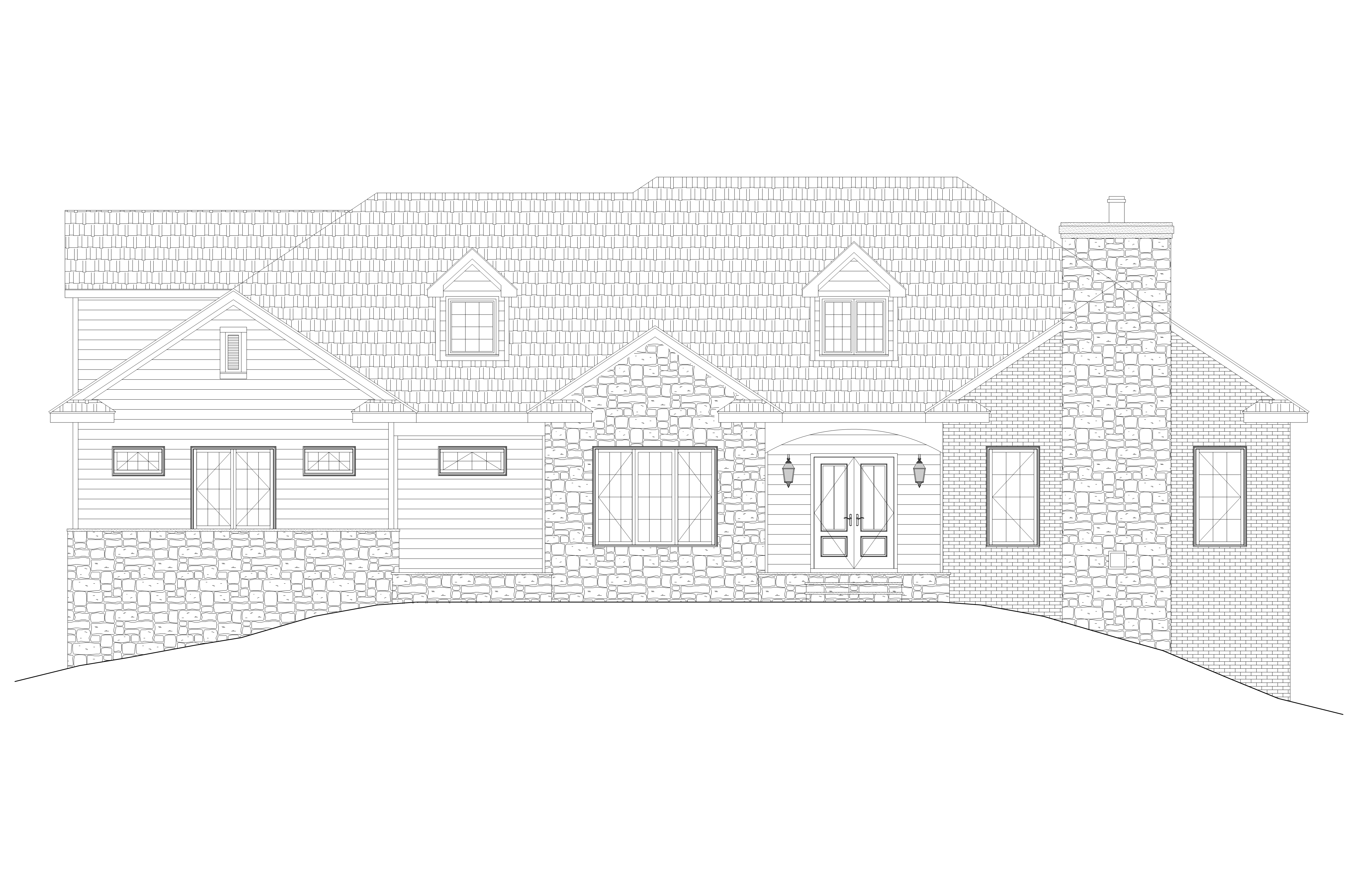a charming country house with a light gray exterior featuring crisp white trim and accents the roof is gunmetal slate adding a modern touch the front porch is adorned with natural wood railing complementing the house s structure the front door is a welcoming rich oak color suggesting warmth and hospitality surrounding the house imagine a lush green lawn with vibrant wildflowers in various shades of purple yellow and pink the atmosphere is serene and inviting with a gentle sunlight filtering through scattered clouds in a light blue sky