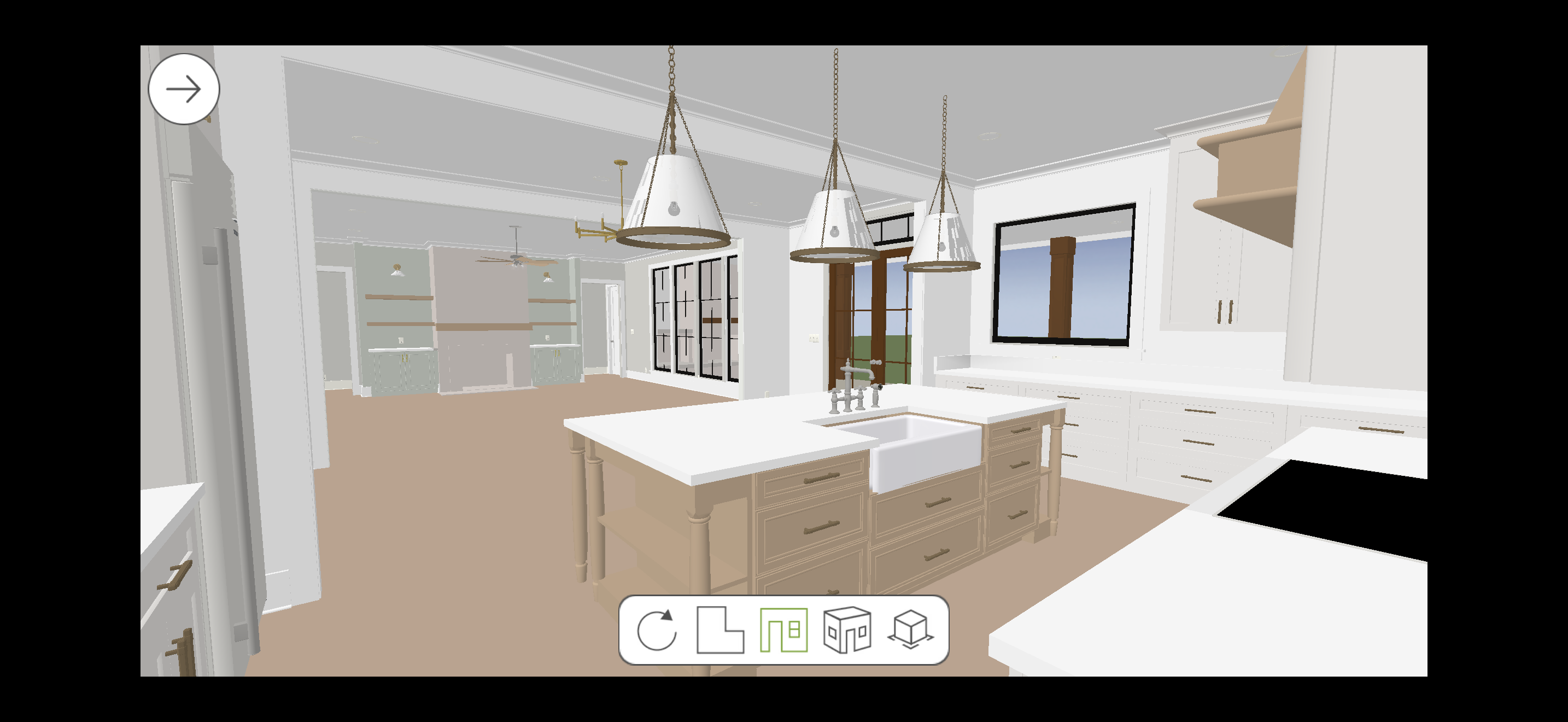 remove interface overlay do not add elements make the floor wood lvp make the fireplace stone keep the island pendant lights glass