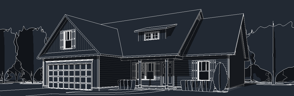 new urbanism exterior shot a modern suburban house with a spacious front porch the house exterior features a soft gray siding and a light gray roof windows are framed in crisp white with the front door painted a welcoming warm red the garage door showcases a muted beige tone in the background lush green bushes and trees provide a natural border set against a deep navy blue sky the front lawn is a vibrant green creating a serene and inviting atmosphere architecture