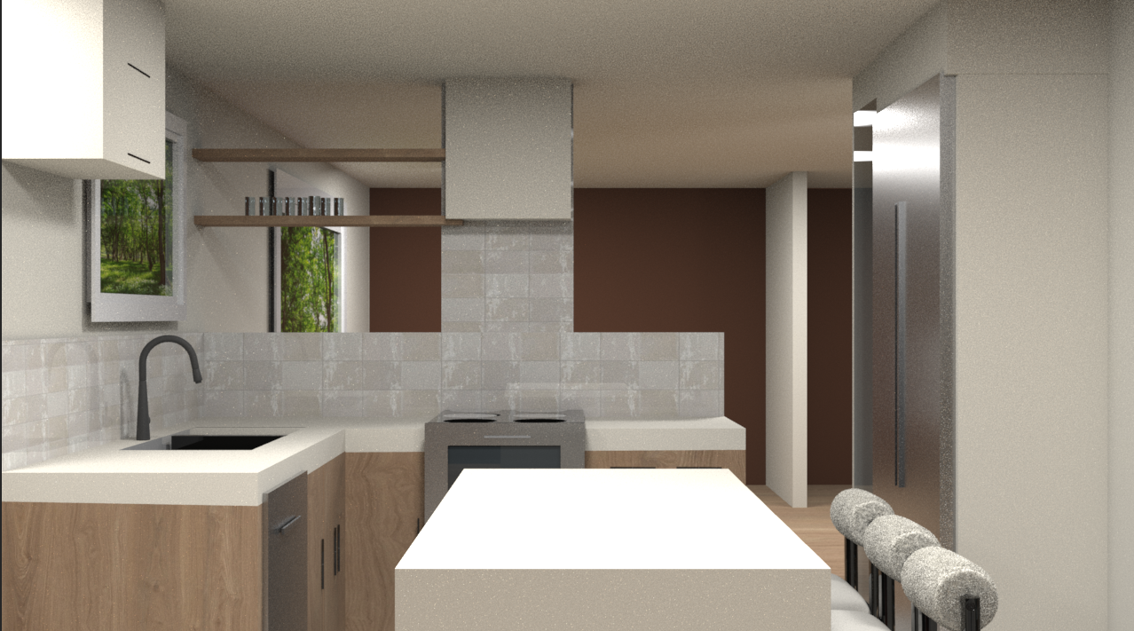 i want the exacte image but with natural light and more realistic render can you add decoration in the wooden panels like vases plates glasses