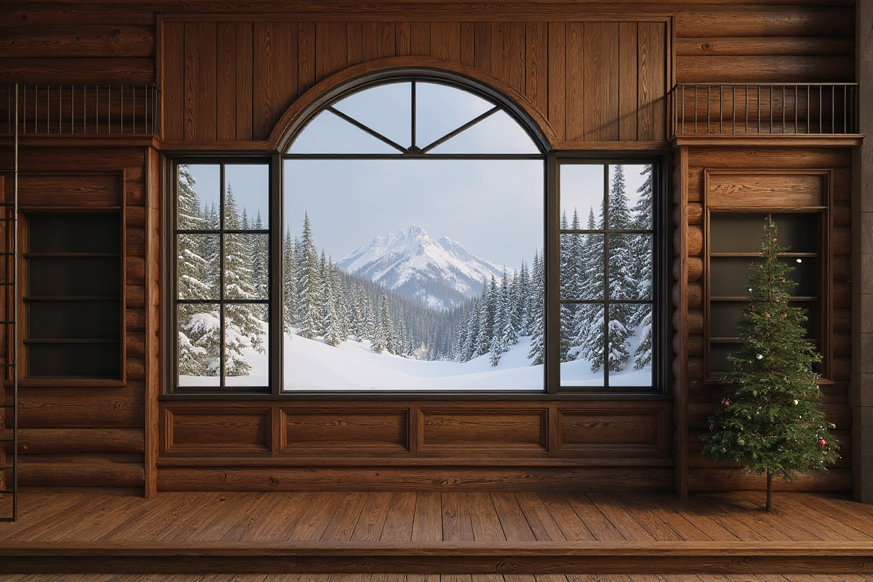 perspective shot the central window is bay shaped the area with the arch is set back 50 cm and the sides slope outward remove the christmas tree