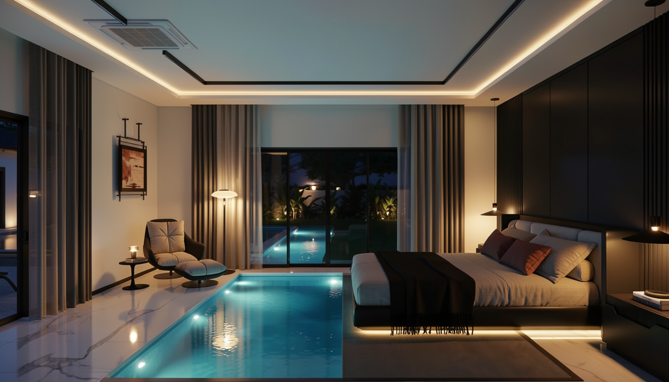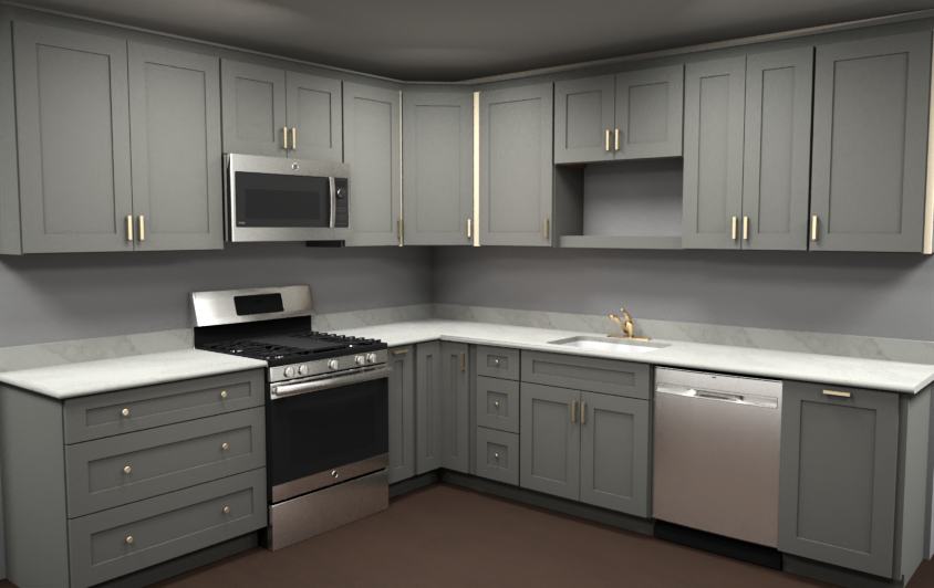 hyper realistic architectural visualization render 8k resolution ultra detailed photoreal quality preserve the exact original design layout and spatial configuration do not move remove or alter any existing objects cabinetry furniture sanitary ware or architectural features maintain all dimensions proportions and placements exactly as designed cabinetry all cabinets are fabuwood nickel finish same for uppers and lowers strictly preserve this color and finish do not shift tone hue or contrast enhance depth and richness while maintaining a consistent nickel appearance across all cabinetry lighting balanced natural daylight filling the room evenly combined with subtle downward facing ambient lighting create soft shadows gentle reflections and realistic highlights avoid harsh contrast or color casting materials realism increase texture fidelity and clarity across all surfaces maintain accurate material response wood metal stone etc with a luxurious high end feel walls smooth white wall surface with a consistent light toned wall covering keep wall color uniform and neutral accents refined brass highlights with polished clarity and realistic reflections not overly glossy staging add a minimal number of tasteful high end staging objects e g decor greenery or kitchen accessories that enhance the scene without cluttering or changing the composition do not remove or replace any existing items overall mood warm inviting and elevated enhance depth color richness and realism while keeping the entire scene true to the original design intent camera architectural interior perspective natural lens no distortion clean composition