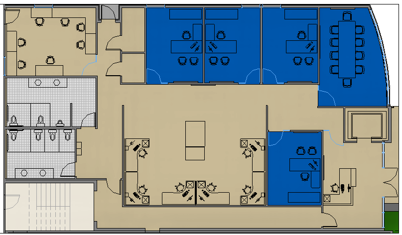 convert this floor plan into a realistic isometric 3d view of a full house show the space from an elevated angle with furniture walls and details visible convert this floor plan into a realistic isometric 3d view of a full modern office show the space from an elevated angle with furniture walls and details visible use the same furniture as shows on the plan do not change the orientation of the floorplan do not add more furniture use carpet in the blue floor use the same furniture as shows on the plan do not change the orientation of the floorplan