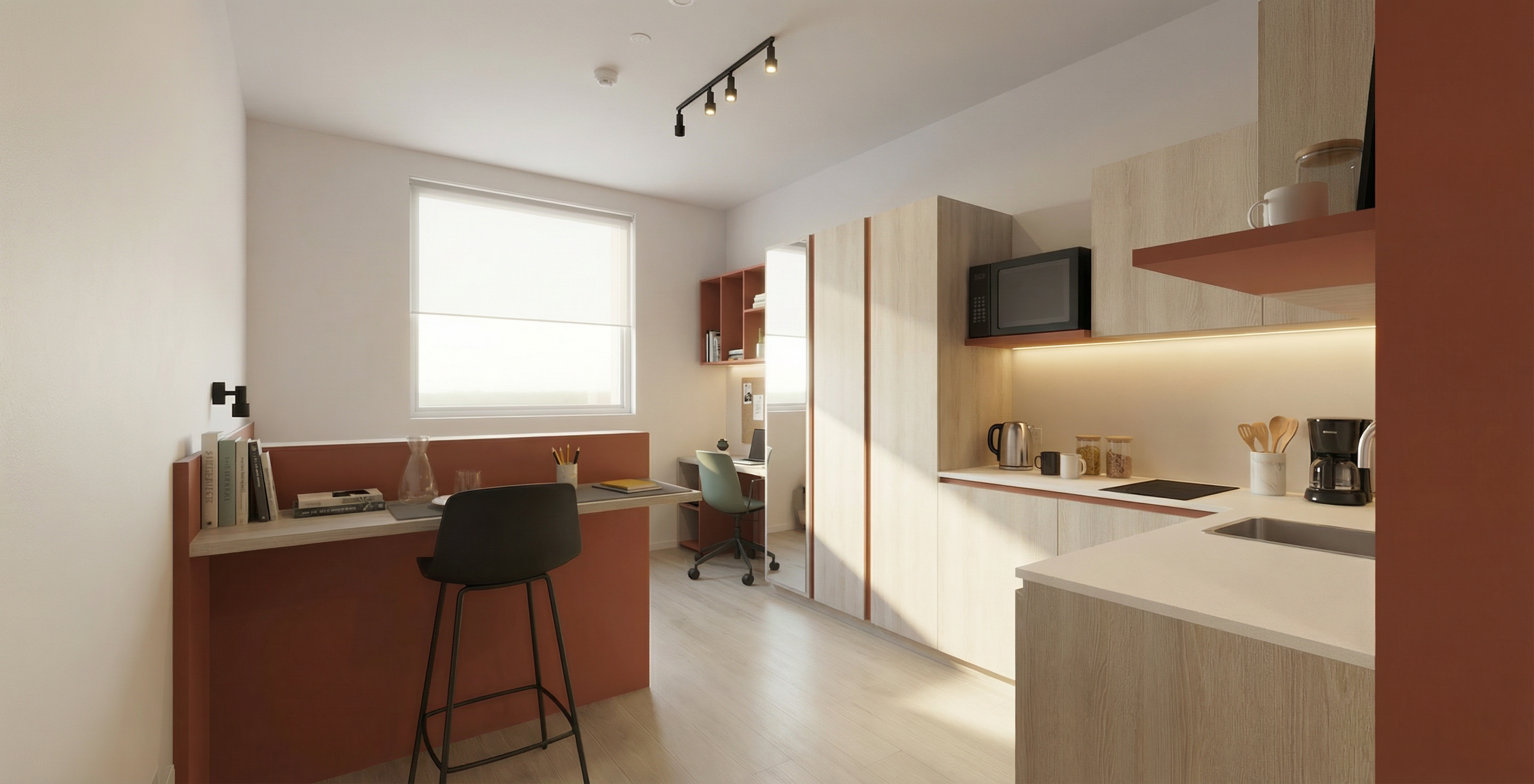 modify only the window mullions inside the existing window frames replace circular mullions with abstract fan shaped mullions inspired by palm leaves very subtle geometric and architectural not literal refined tropical modern aesthetic mullions should be thin elegant architectural and consistent across all windows