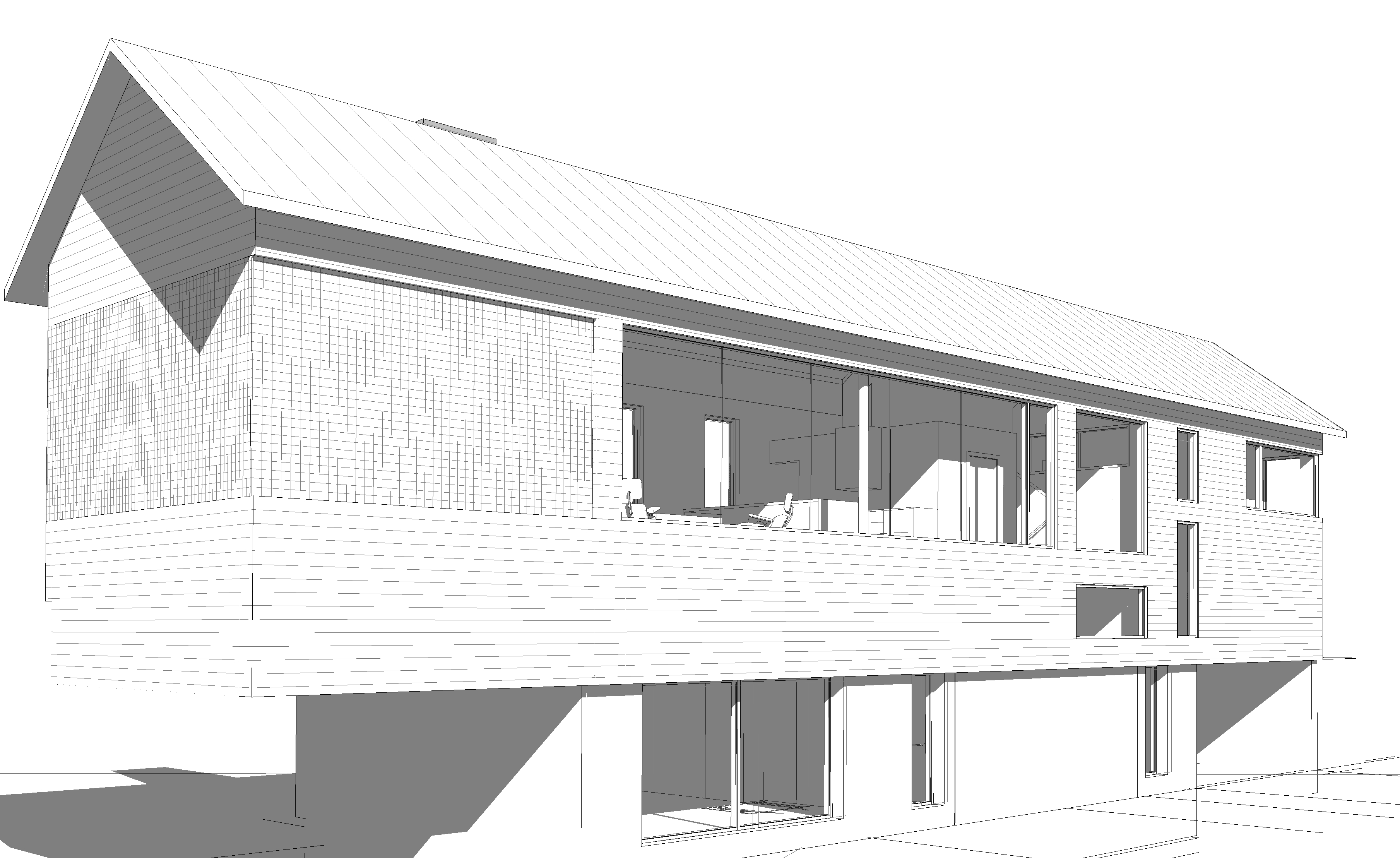 modernist exterior shot black shu sugi ban wooden cabin black metal roof exposed concrete foundation set in the heart of the forest the cabin is situated on a slope garden level and the right side is covered with black mosquito screens the car is parked underneath the building and at the far end there is black steel storage resembling a container architecture