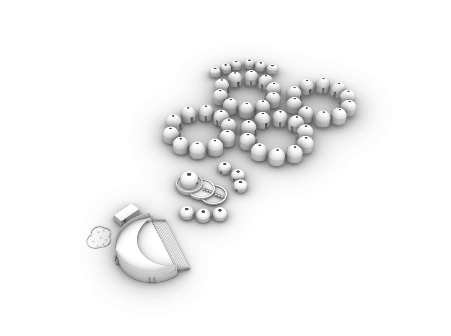 render like a desert neighborhood that is responsive to flooding and heat with green roofs