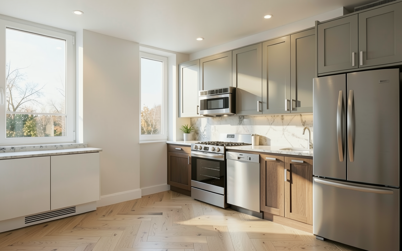 change the grilled toekick of the hvac unit to match the wood tone of the base cabinets