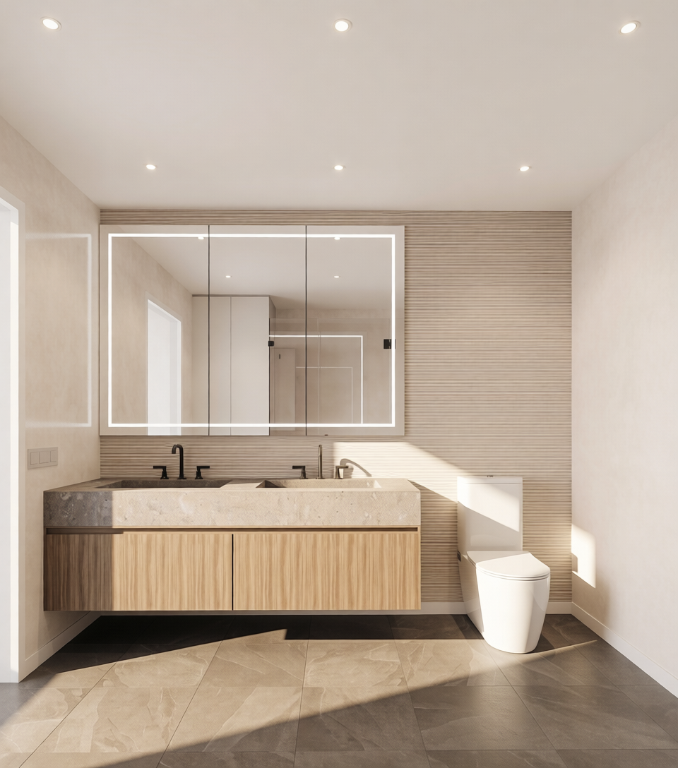 sunny day beautiful clouds correct perspective view like a photorealistic architectural photo