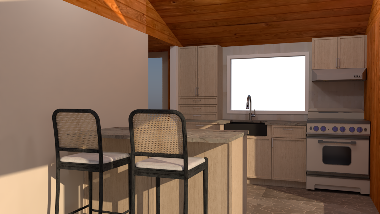 outside windows should show woodsy views in the poconos keep inside as is just brighten it up please
