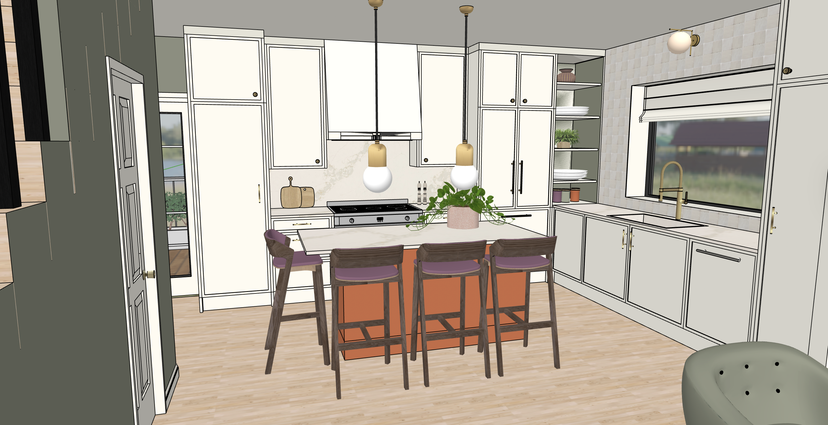make the green chair in the corner of linen texture keeping the colour turn off the lights inside and add more natural light from the window make floor colour a little lighter