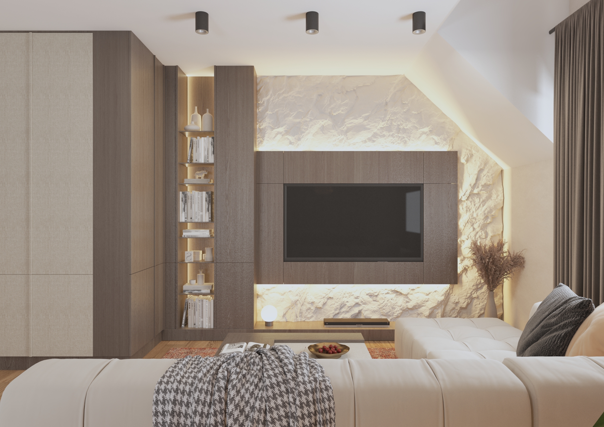 interior render enhancement keep same layout improve lighting natural light soft shadows realistic materials