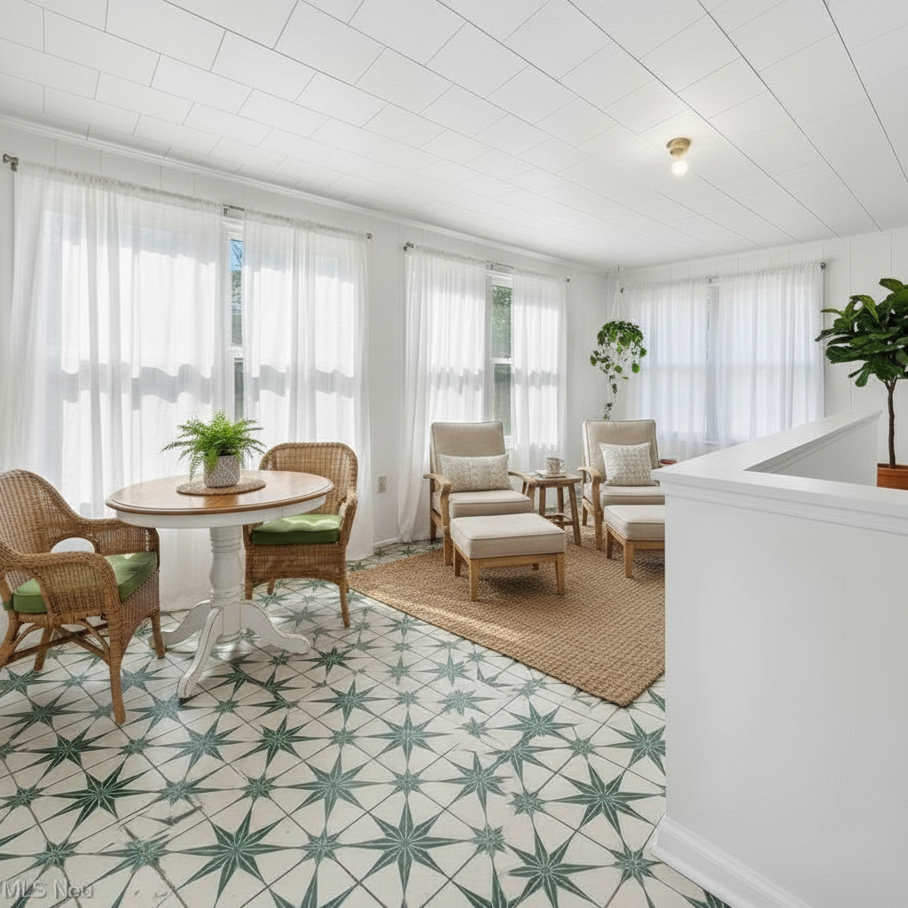 photorealistic render turn the vanity lights on at 3000k the door and its frame is white respect all geometry tiles are a lighter blue color
