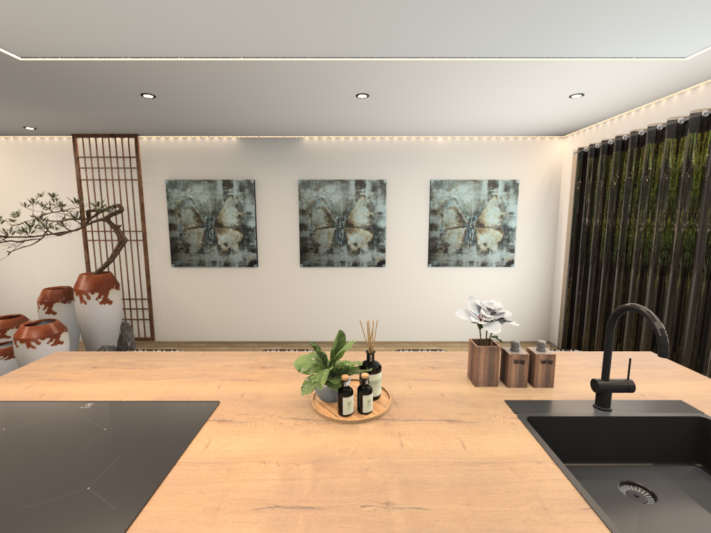 verbeter deze foto van een keuken tot een professionele interieurafbeelding optimaliseer de belichting zodat de ruimte helder natuurlijk en uitnodigend oogt met zachte realistische lichtinval en gebalanceerde schaduwen verhoog de scherpte en helderheid subtiel corrigeer witbalans en kleuren zodat materialen zoals hout steen metaal en lak natuurgetrouw en luxueus overkomen laat het geheel strak stijlvol en hoogwaardig ogen zonder de indeling meubels of architectuur te veranderen behoud een realistische uitstraling verfijn contrast en details verminder ruis en geef de foto een warme elegante interieurstijl zoals in een premium keukencatalogus