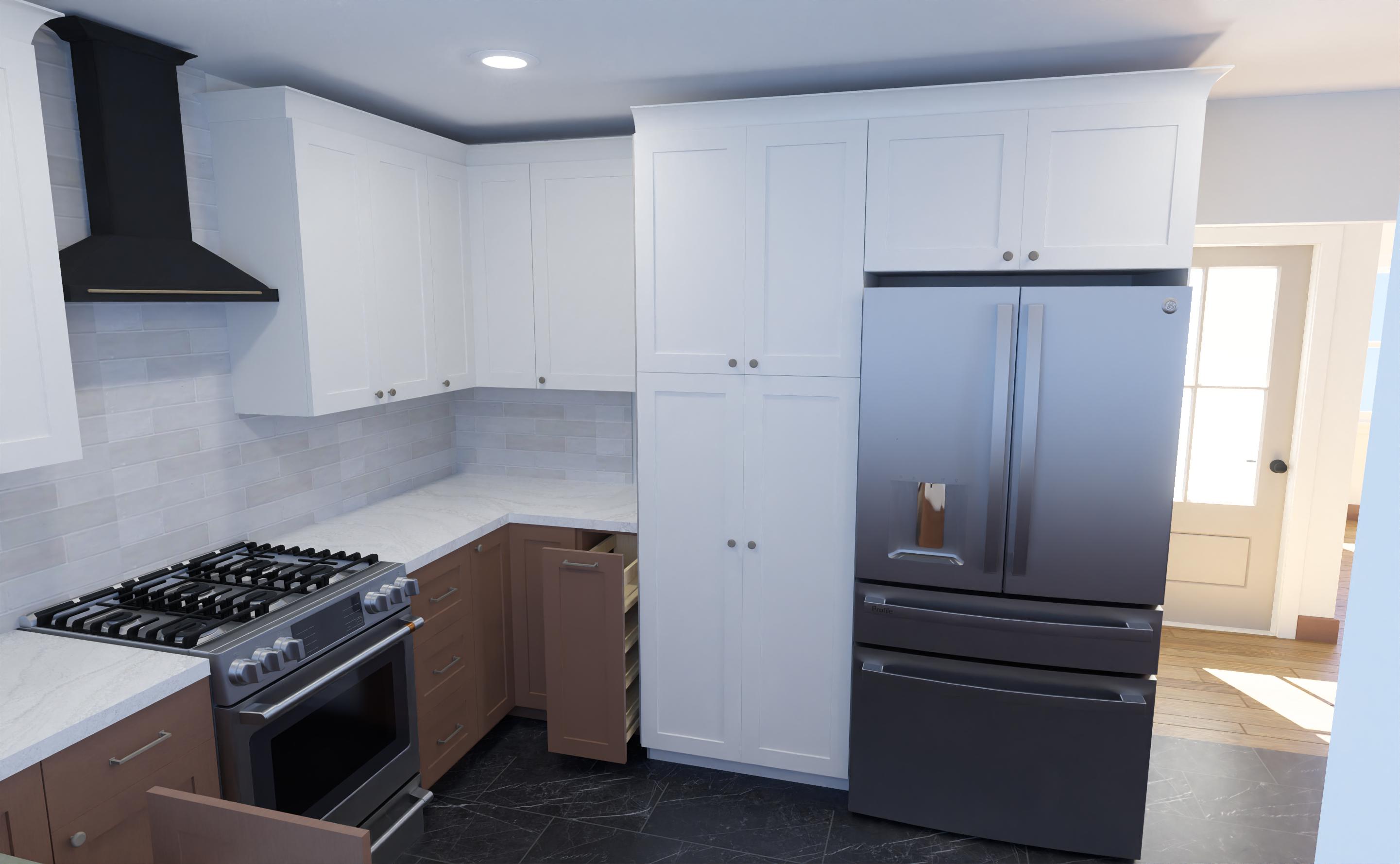 modern farmhouse add black and brass accents to countertop do not add any pendants or island keep cabinet colors the samw