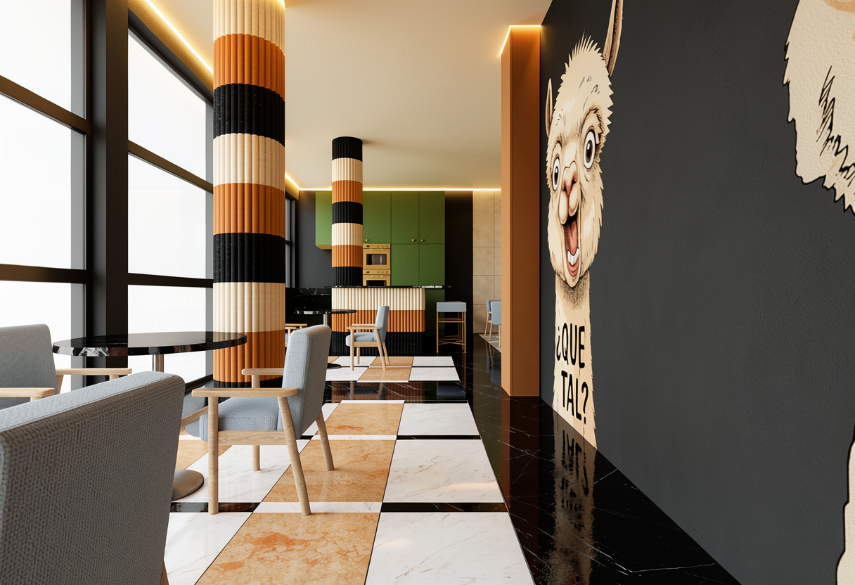 all kitchen cabinets in porcelain with white marbled worktops piano in black and add lighting