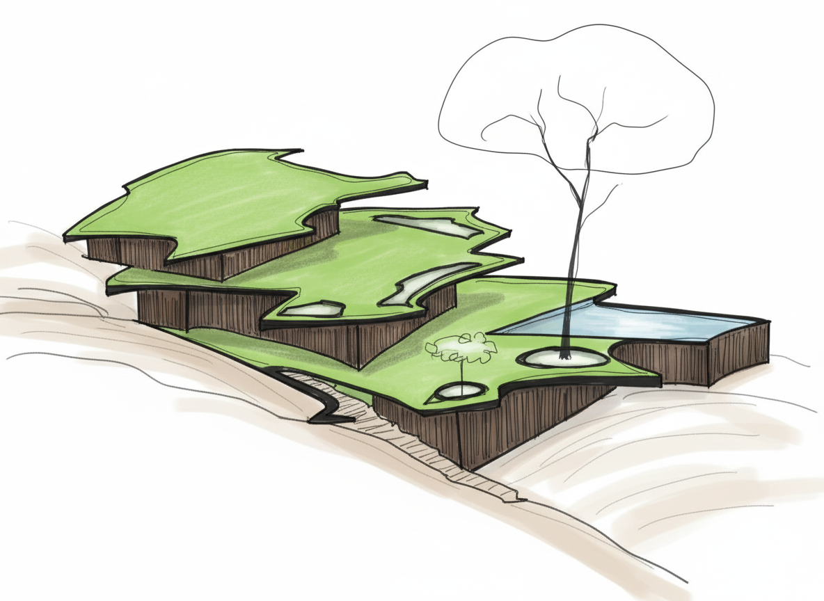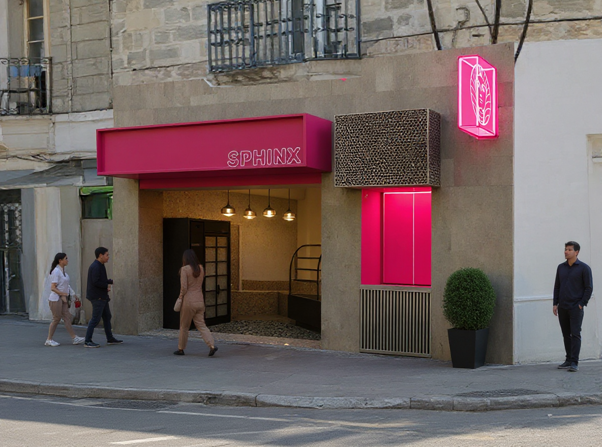 make this render more realistic by adding passersby and a plant on the side make the facade rendered in concrete finish as it is
