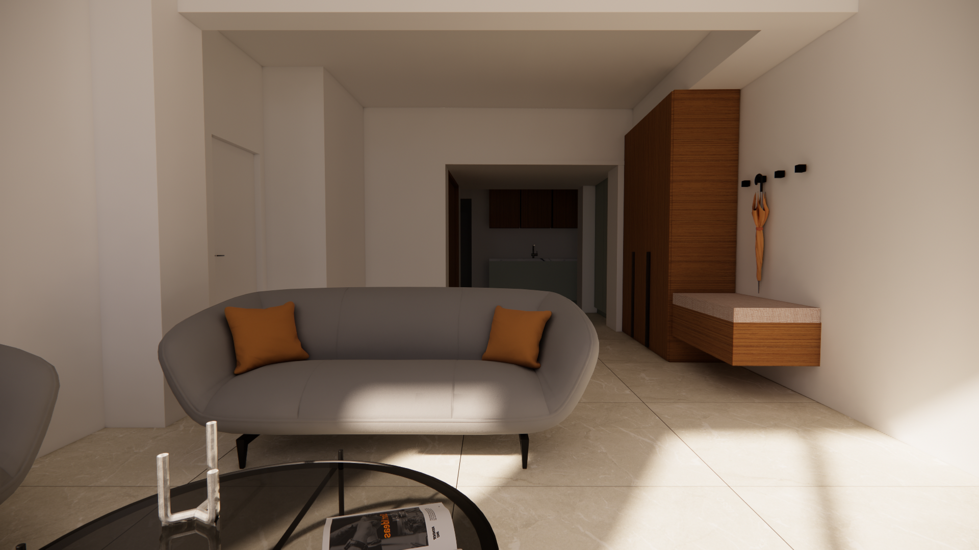 cozy living room modern dining table with chairs and kitchen at the rear hidden lights and spotlights in the false ceiling sofa throw painting on the wall
