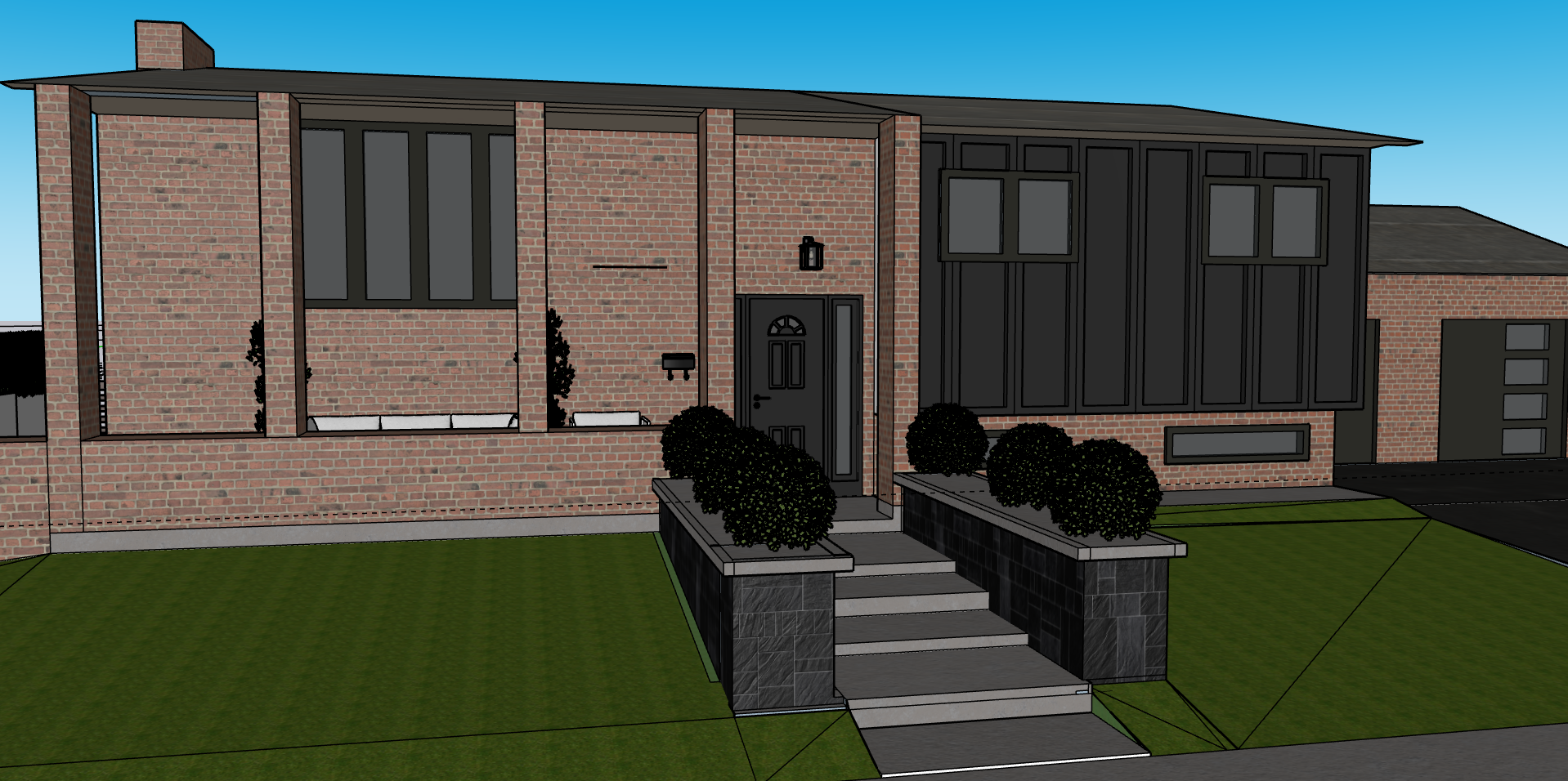 golden hour cloudy day add the same light above the door on the two brick coulombs on each side