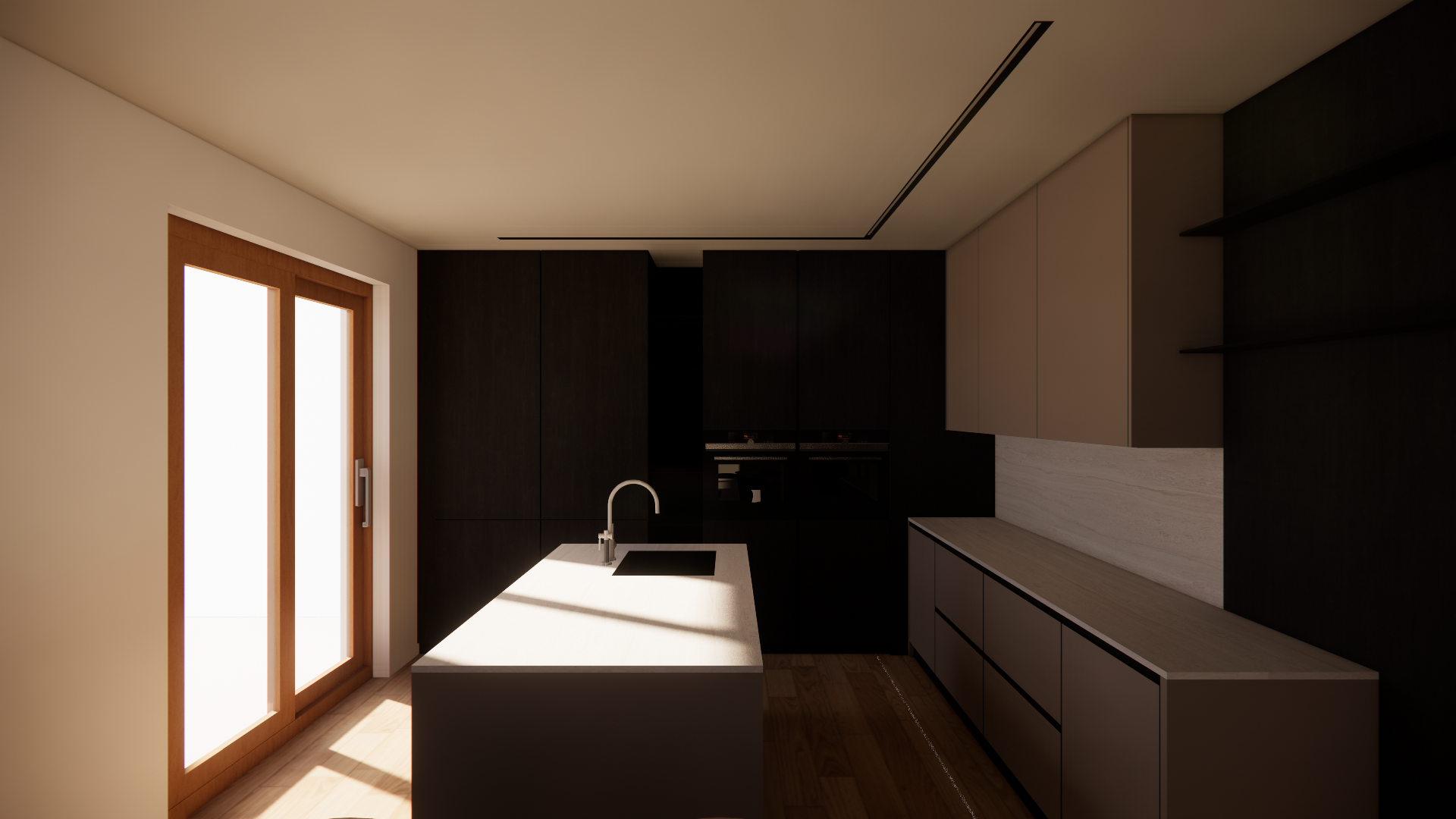 island top is also travertino white and the side of island is the same color as the kithen right side