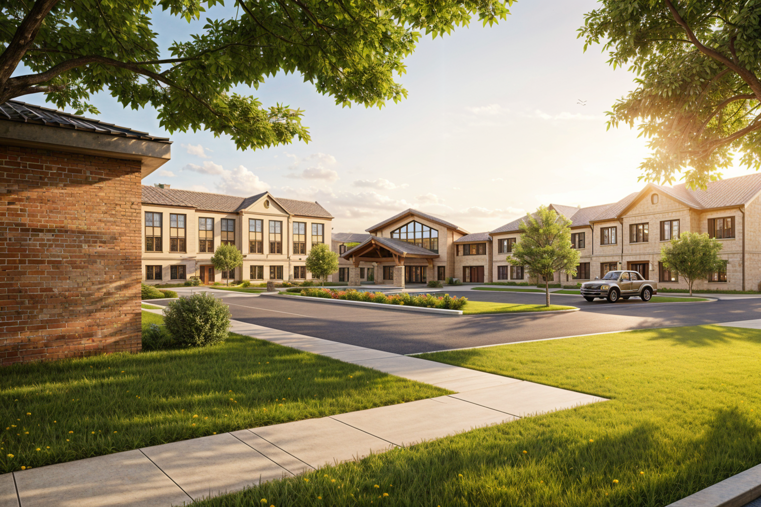 architectural presentation rendering in a hand drawn style using loose ink linework with visible pen strokes and slightly irregular outlines soft watercolor washes for color with muted natural tones greens warm stone light blues minimal shading relying on transparent layers and paper texture sketchy expressive vegetation and trees with gestural strokes lightly rendered human figures for scale not highly detailed sunlit atmosphere with a bright sky and subtle cloud texture overall look is an architectural concept sketch warm illustrative and expressive rather than photorealistic resembling marker and watercolor on textured paper