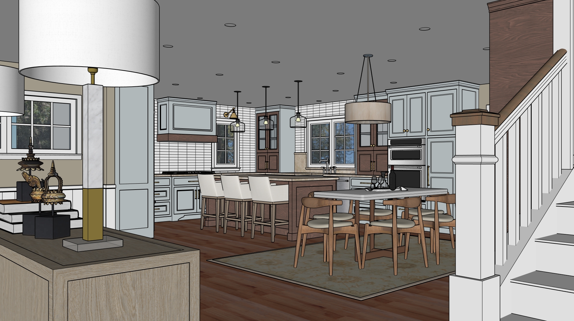 classical use my drawing do not give me a world famous classical building match the rendering style of four prior renders with warm light coming through windows architecture