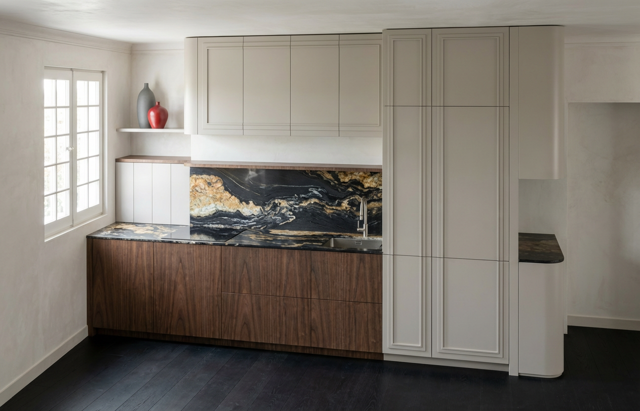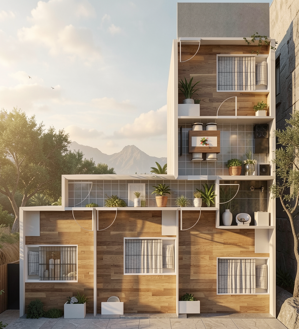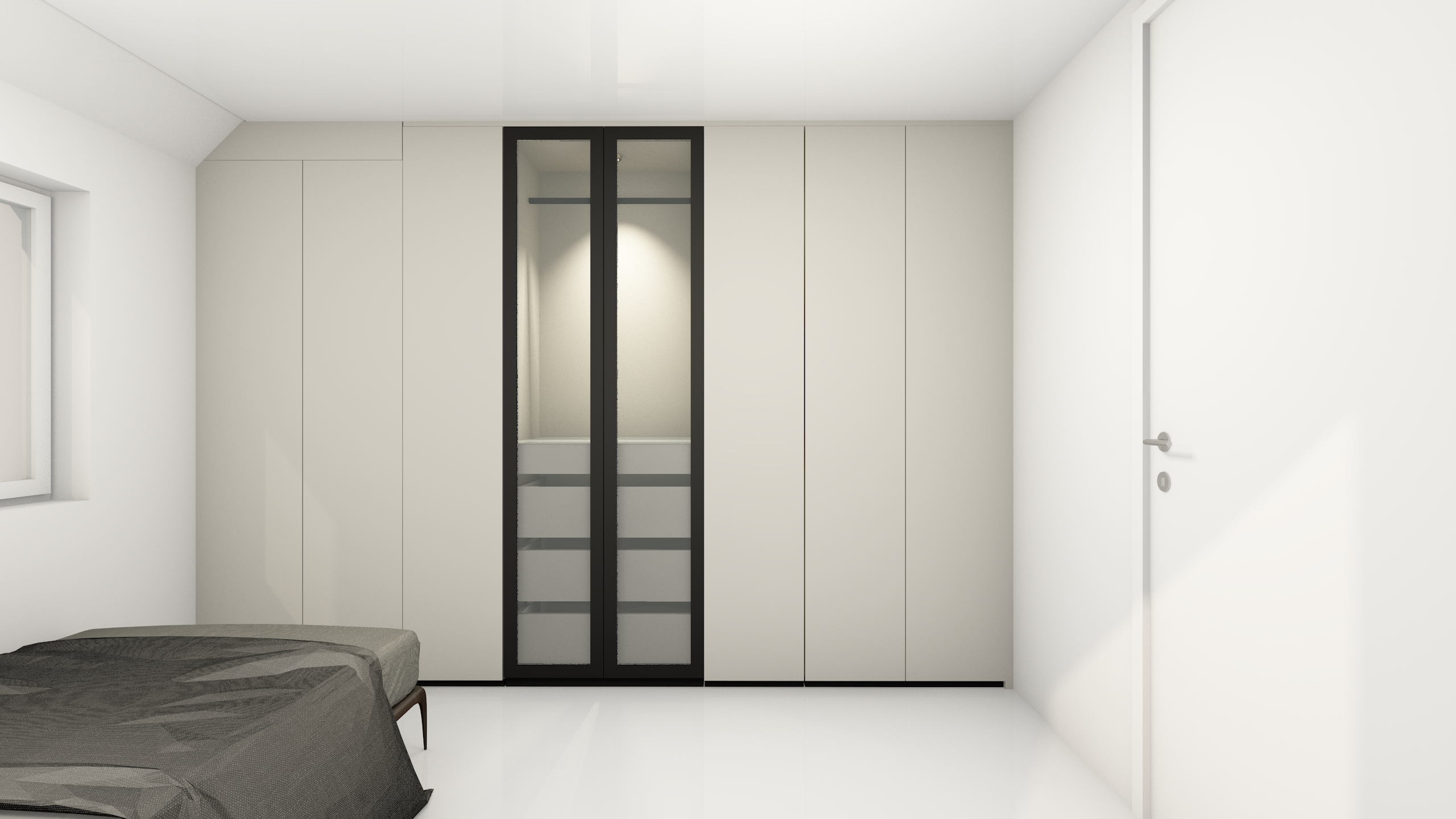 minimalist cozy bedroom soft colors grey oak laminate flooring