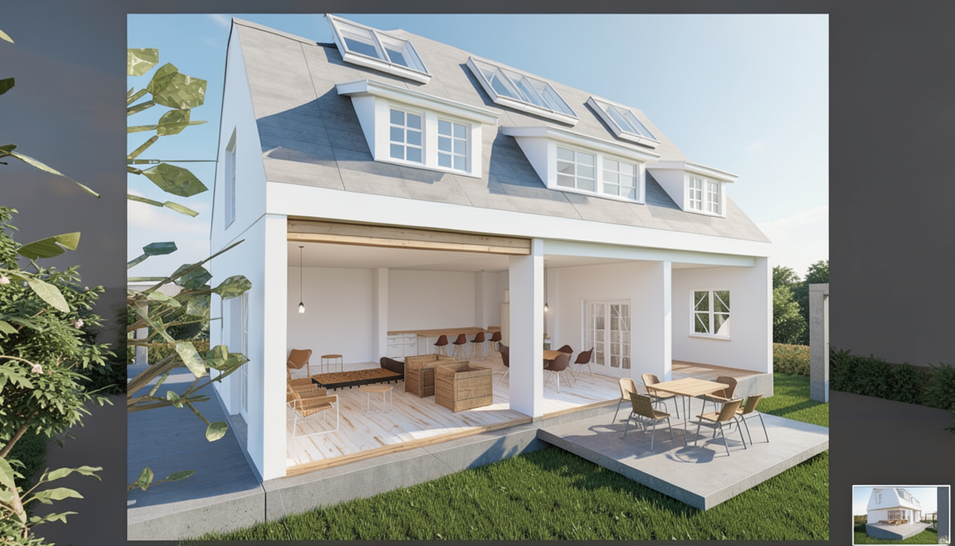 show white walls and white windows and white doors and fishbone wood white oak floor green area lush grass and decks in concrete