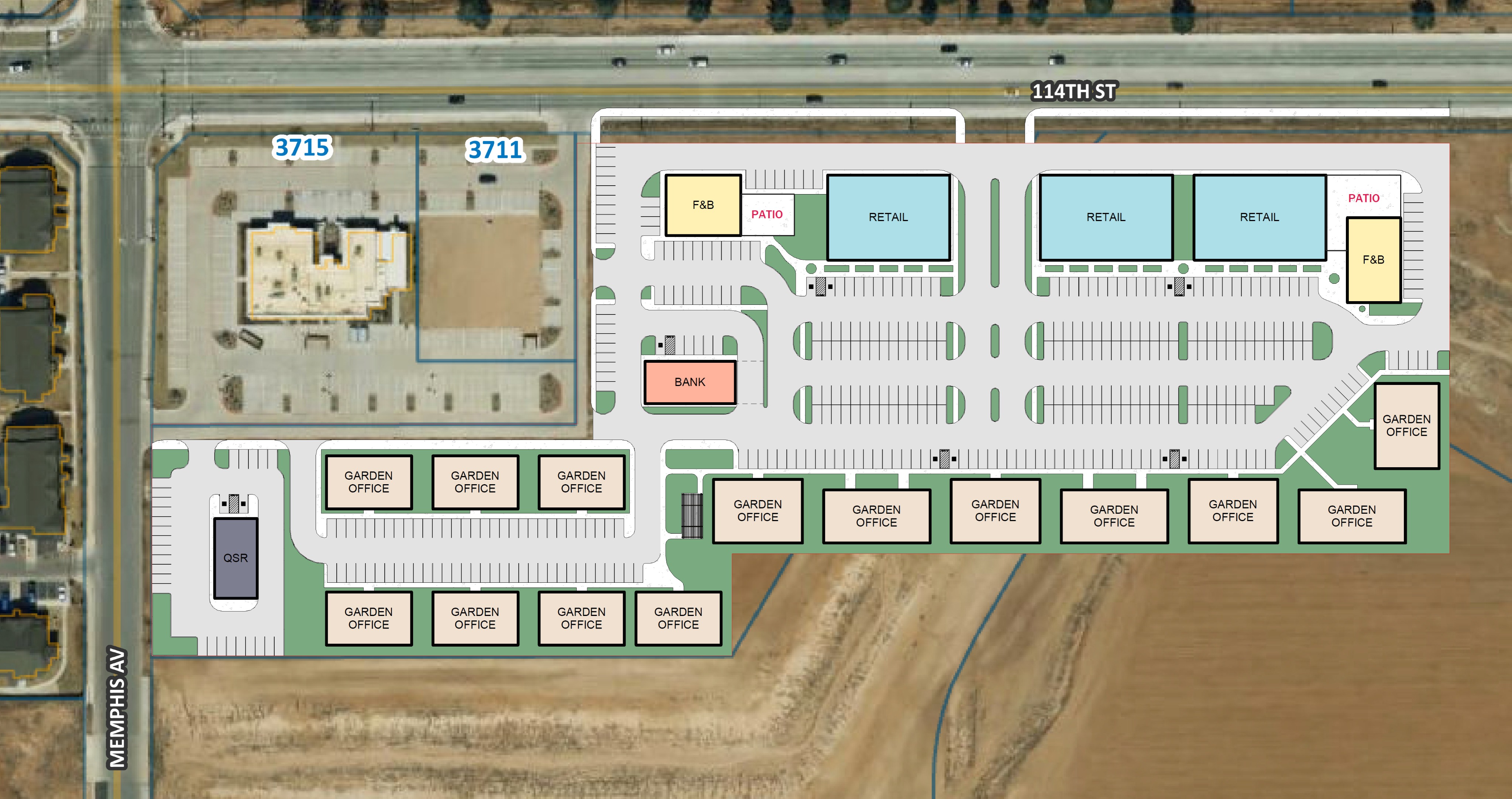 create an accurate sketchy architectural site plan maintain building pad colors place tree symbols in landscaped areas
