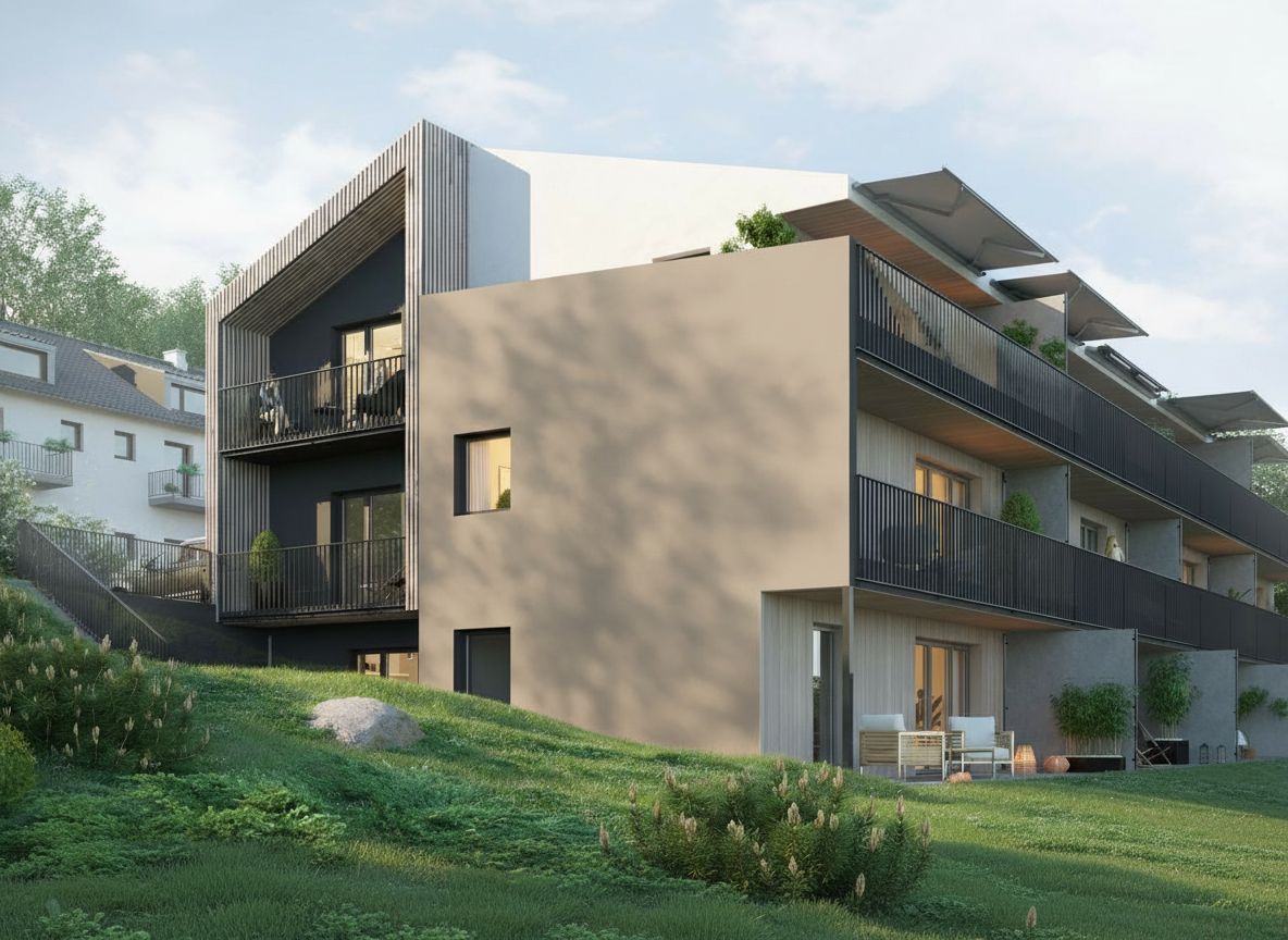 important preserve the existing geometry and the existing context exactly as provided do not modify alter reinterpret add remove scale or reshape any geometry do not change the site surroundings street layout neighboring buildings vegetation or context elements do not modify geometry scale proportions buildings road layout sidewalks or surrounding context in any way do not modify text soft overcast sky noon atmosphere diffused neutral natural daylight with subtle grey tones cinematic architectural mood warm interior lighting 4000k glowing from inside creating strong contrast between cool exterior and warm interior large glass surfaces with realistic reflections mirror effect environmental reflections of sky and surroundings important do not add new windows keep the original windowsdo not modify the griddo not add glass surfaces