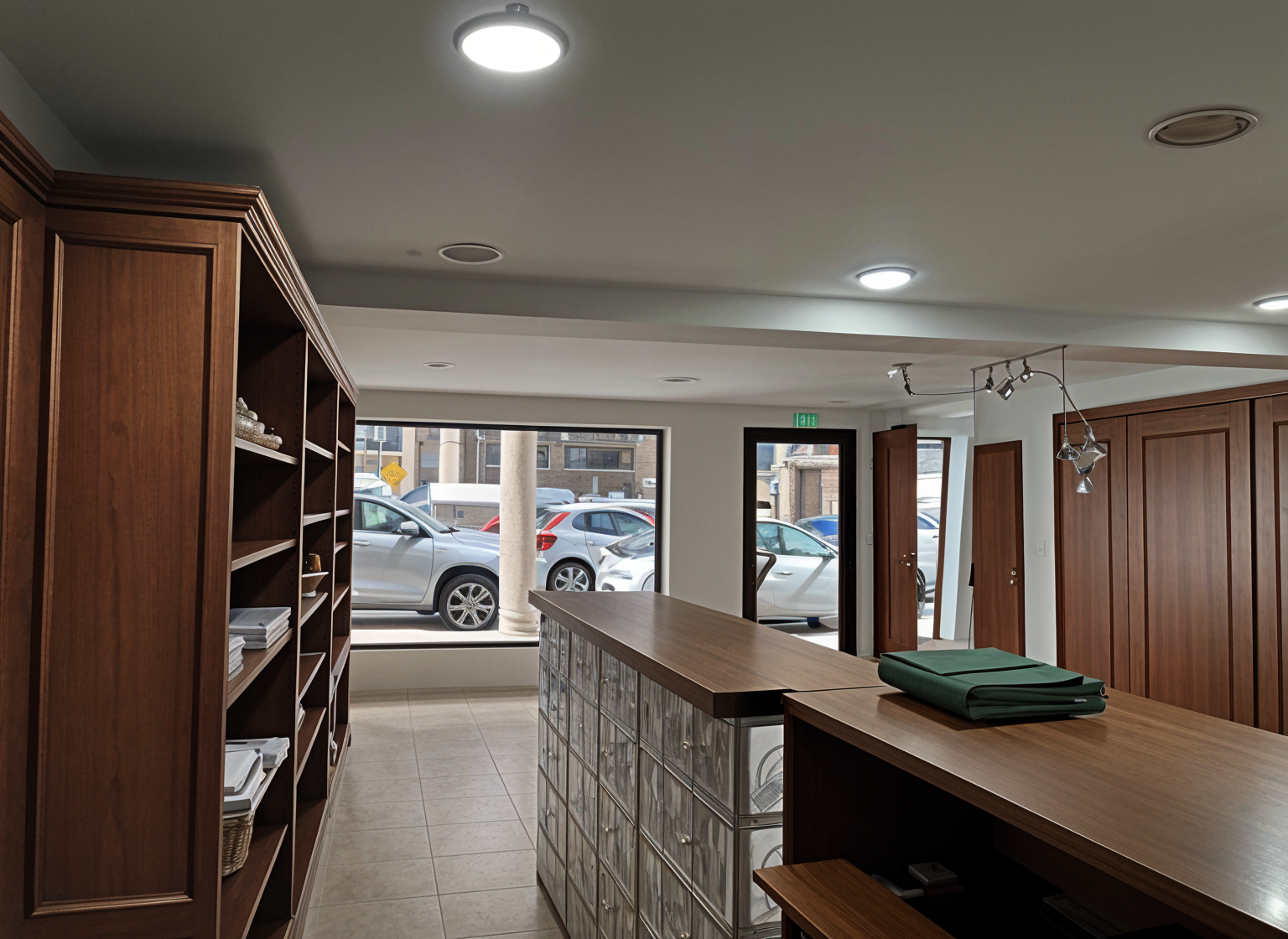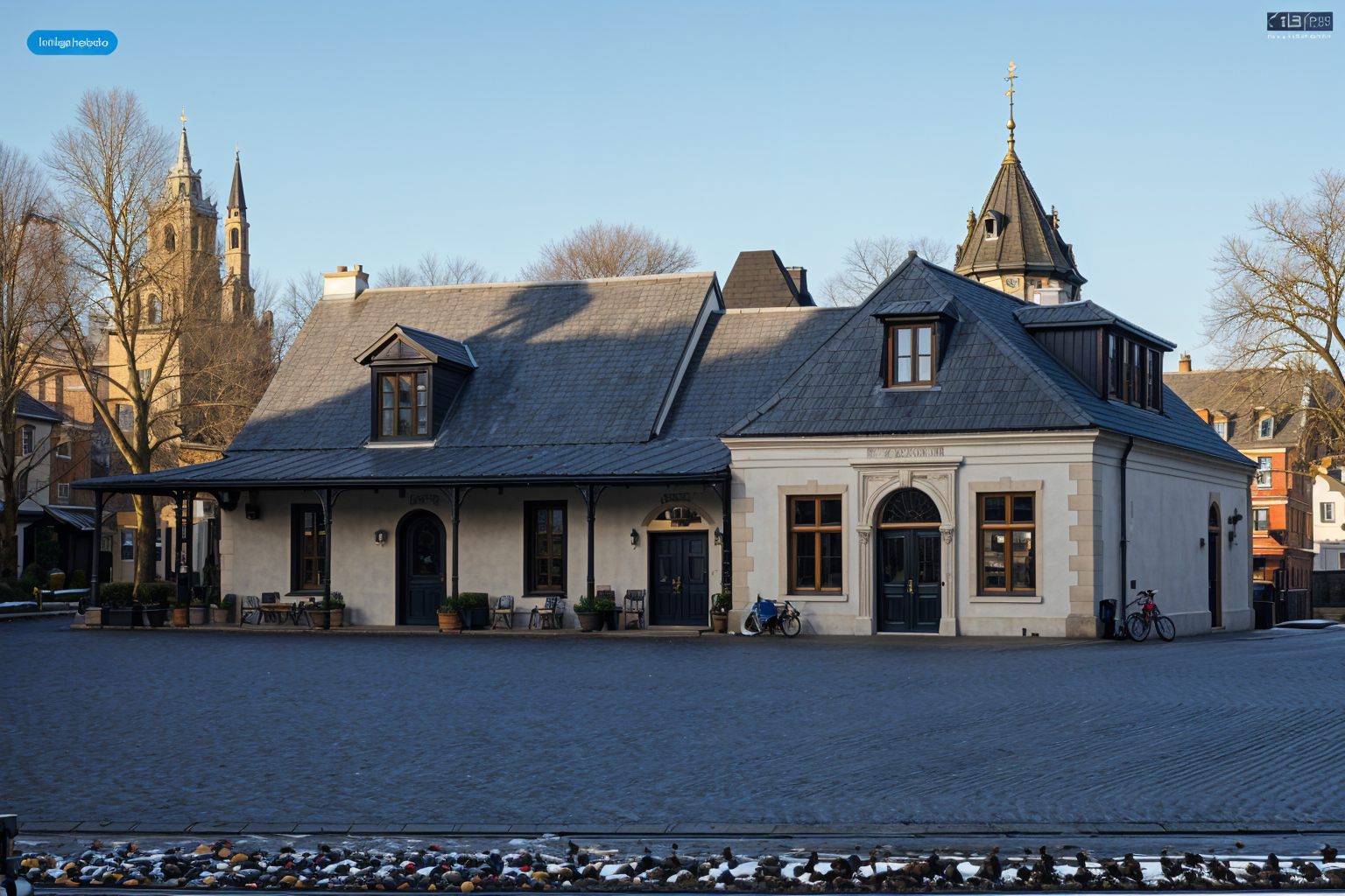 photorealistic render of the uploaded house elevation first floor exterior walls burnt red brick warm reddish tone realistic brick texture second floor exterior walls dark olive green shingles siding uniform and clean roof matte black gabled roof sharp clean lines surroundings autumn season in the u s trees with orange yellow and red leaves some fallen leaves on the ground warm natural daylight do not alter the architecture or proportions of the house keep the same windows and layout no people no cars no text no extra objects only apply the specified materials and environment architecture
