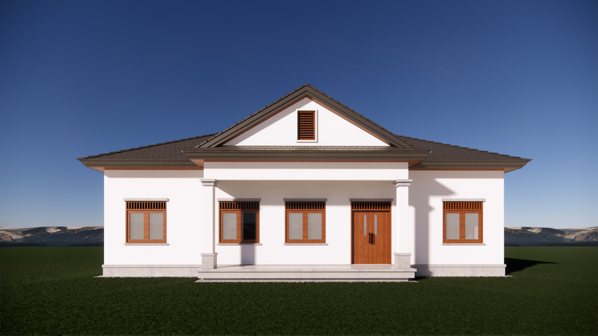 enhance this image to be a realistic architectural rendering maintain all the material and color add trees and mountains in the background clear skies with minimal shadows
