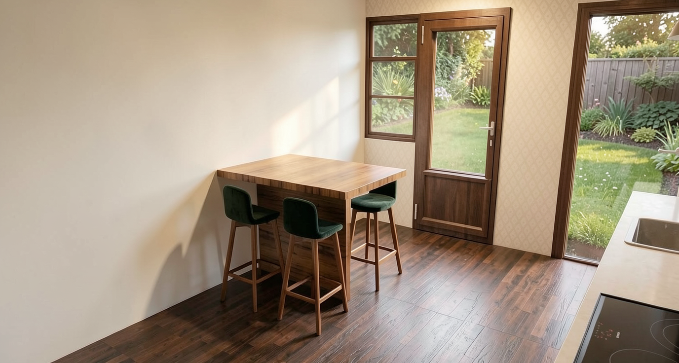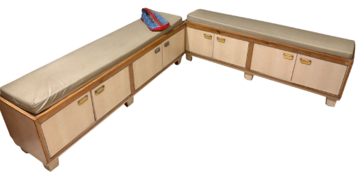 oak wood finish with poshhed framing in the existing wood cooler handles and remove the cusuon from top and use a blue green ceramic tile glazed fluch with the top