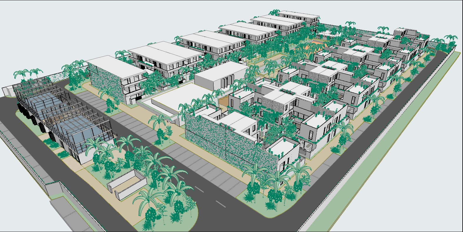 white facades lit of greenery maputo residential compound nice light