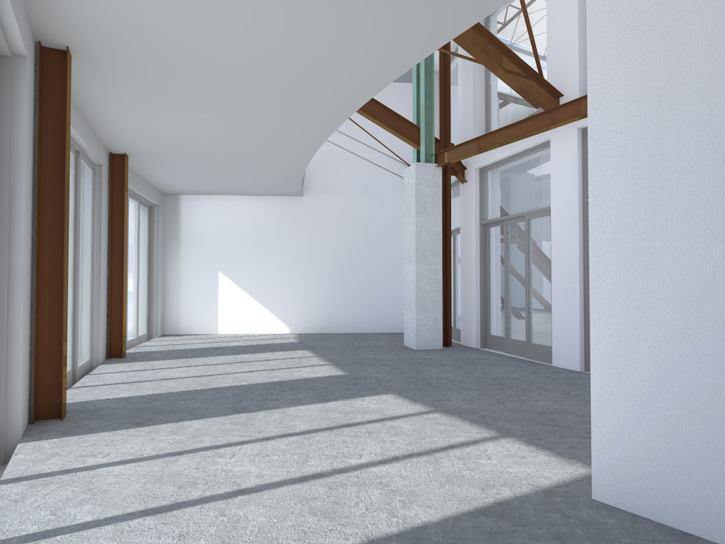 make the interor an atelier space with a rustedsteel structure